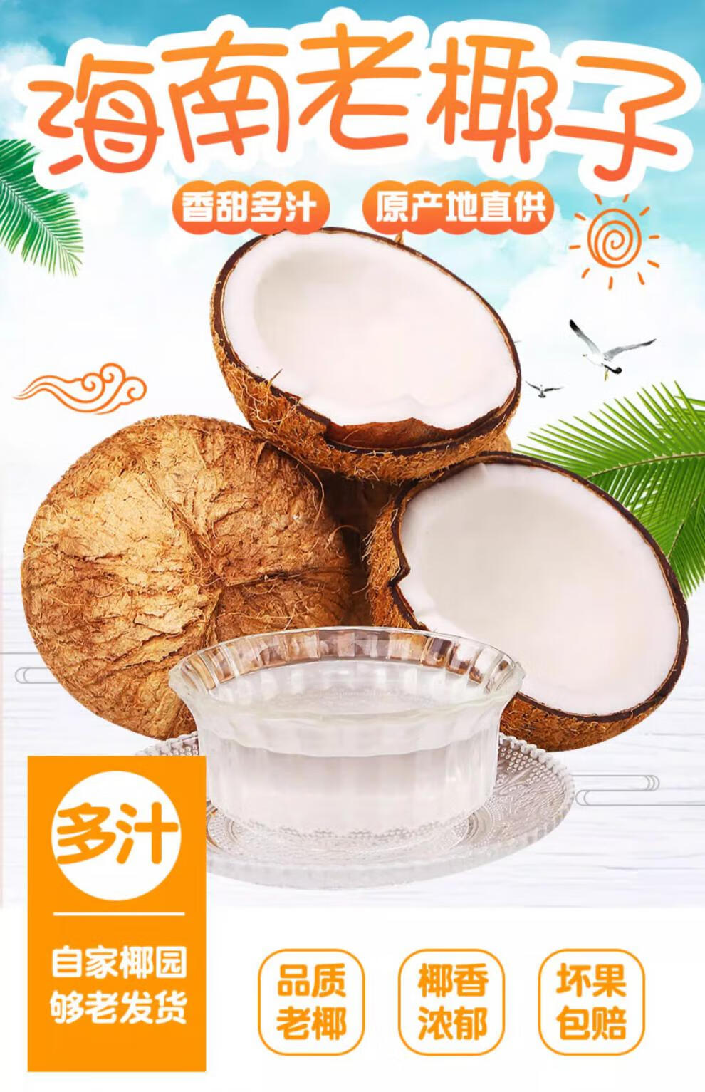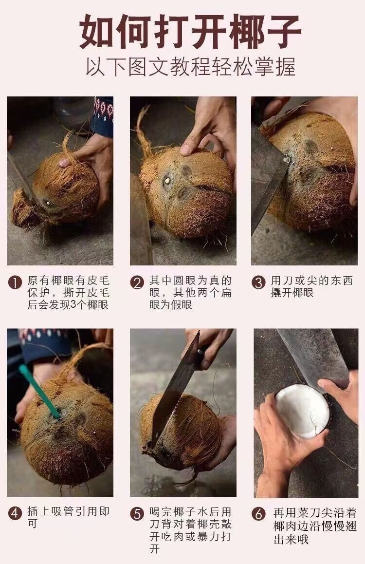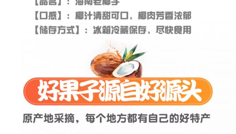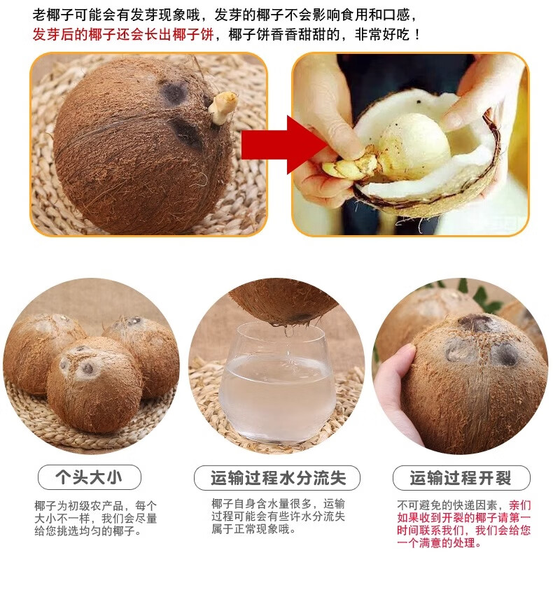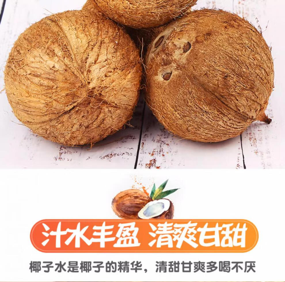 Fresh Hainan old coconut hairy coconut, seasonal fruit for pregnant women, coconut treasure coconut, green coconut, White Emperor specialty, 4 pieces, with hole opener + straw
