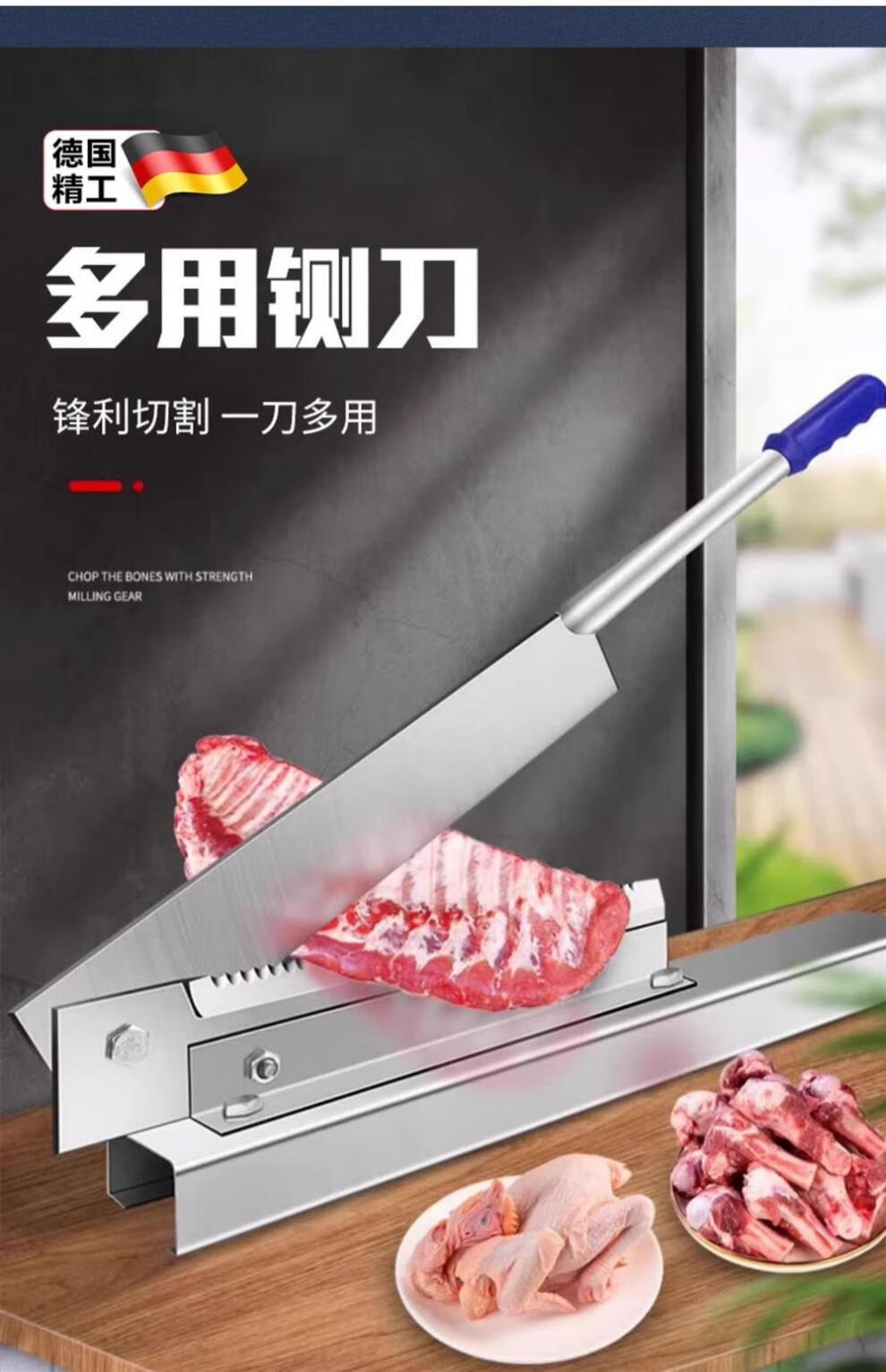 Jingyouyu German precision bone cutter bone cutting knife household manual commercial knife bone cutting artifact chop ribs cut chicken frozen meat special thickened manganese steel integrated milling tooth steel seat 40CM 60 and above 160mm
