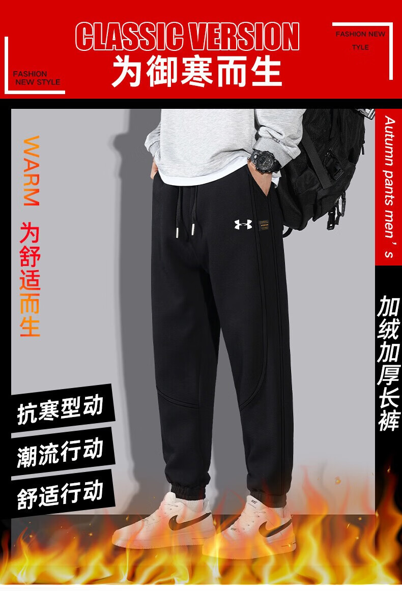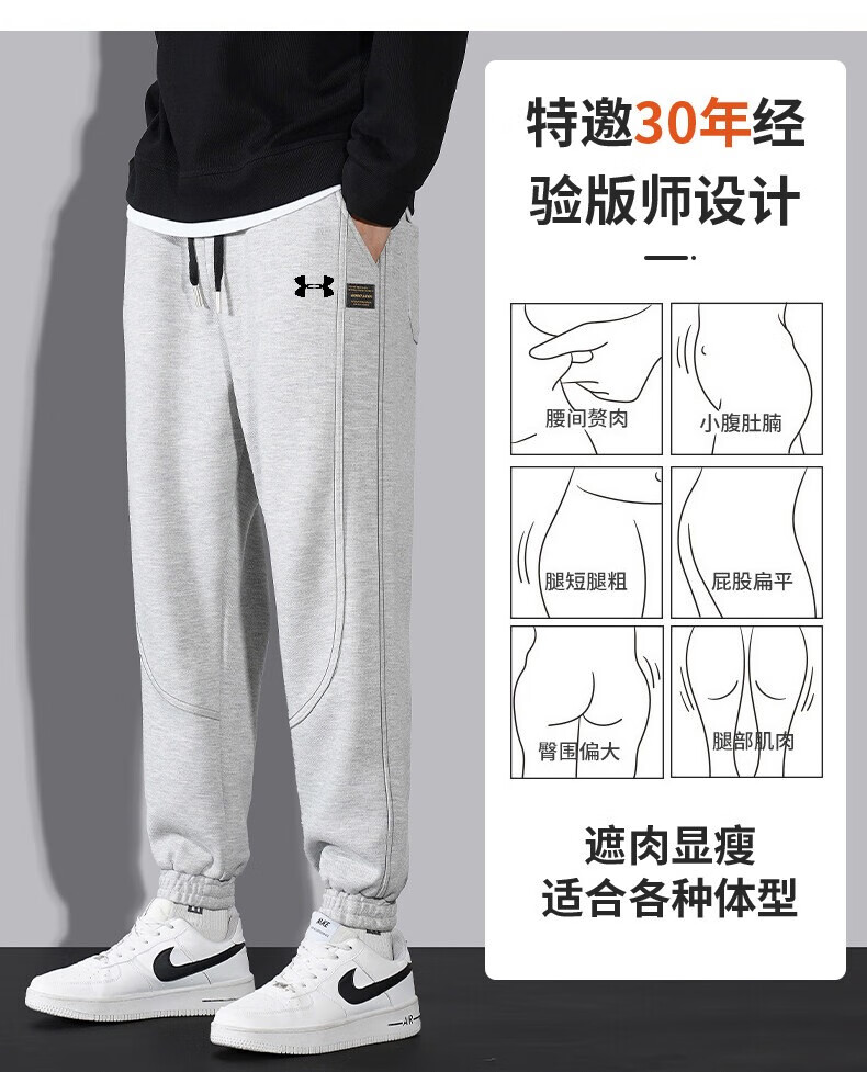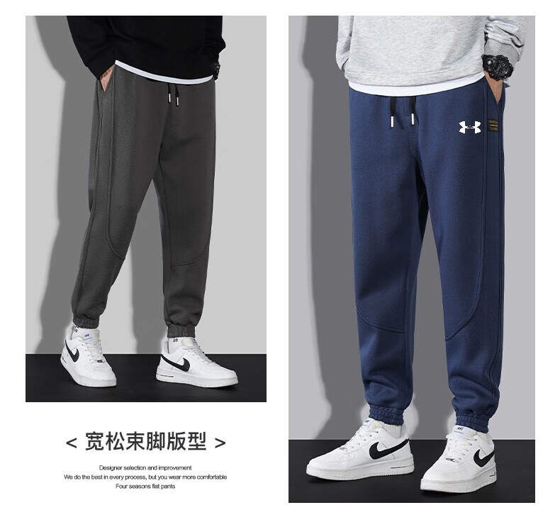 Under Armor Fashion Spring Autumn Winter Men's Casual Sports Trousers Hong Kong Style Trendy Tie-Leg Sweatpants Loose Velvet Small Leg Pants Blue 2XL (Recommended 150-170Jin Jin is equal to 0.5kg)