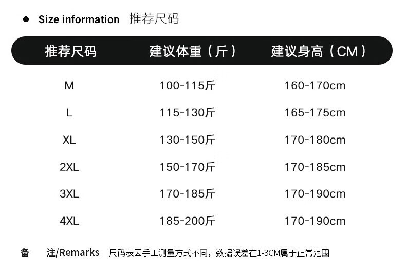 China (cm) 165 / 88-90 170 / 96-98 175 / 108-110 180 / 118-122 185 / 126-130