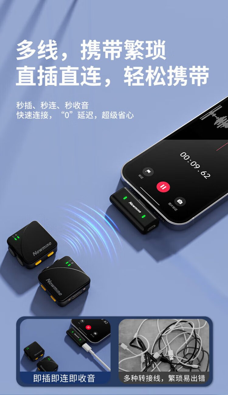 Newman MC226 Wireless Lavalier Microphone Outdoor Anchor Douyin Radio Microphone Live Recording Equipment Shooting Video Mobile Phone Pickup Short Video True AI Noise Reduction Wireless Microphone Two-person Universal True AI Noise Reduction + Charging Compartment Version