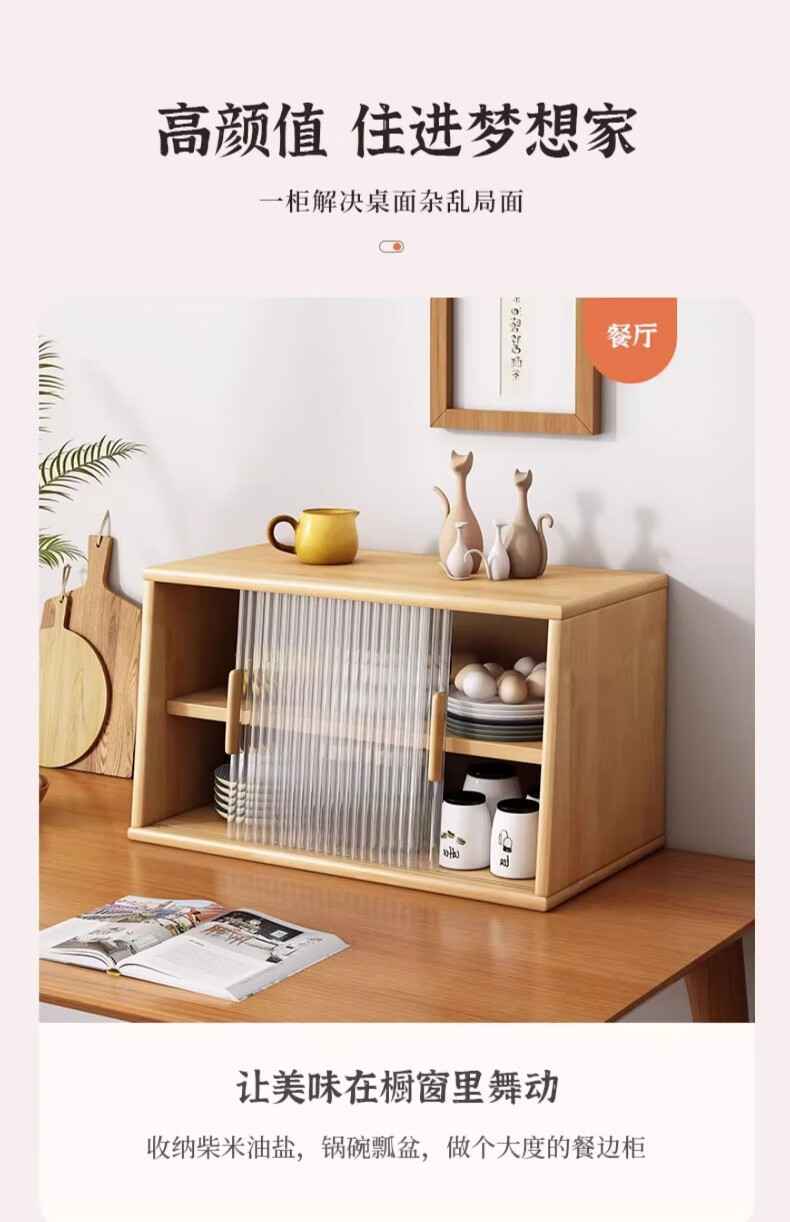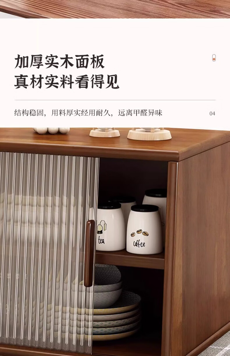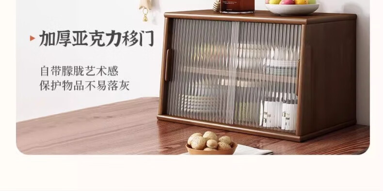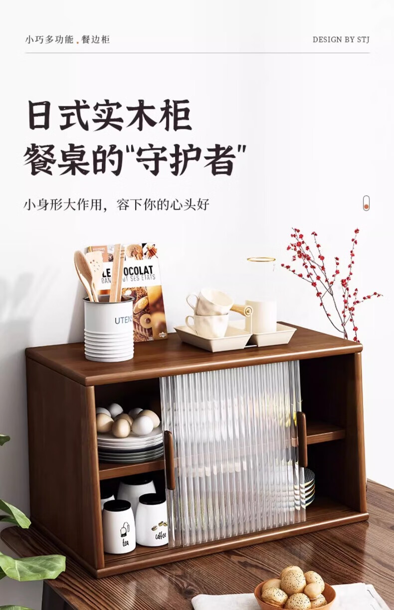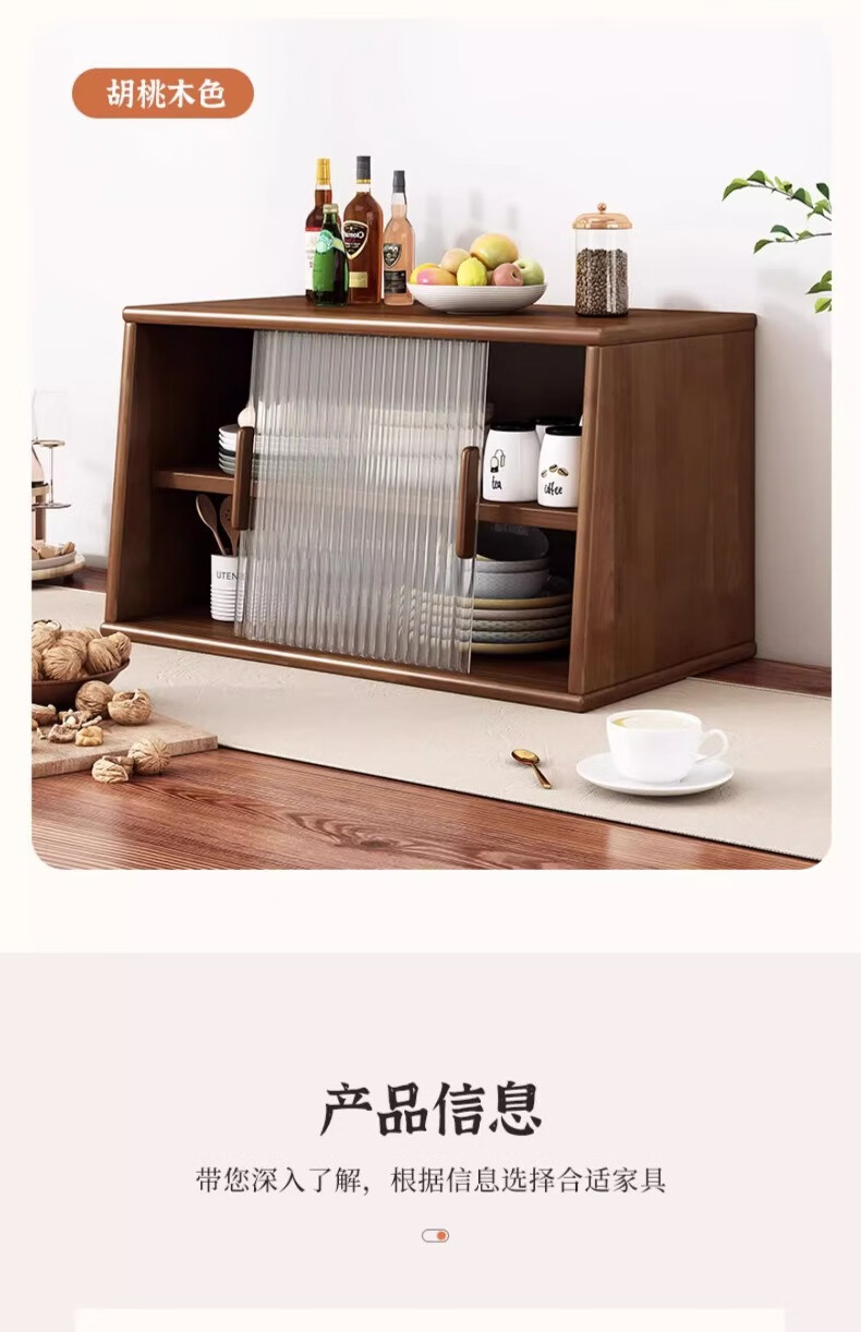 Yijiada Japanese solid wood sideboard tabletop storage cabinet cupboard walnut color dining table storage rack countertop storage rack four layers of varnish solid wood color 67CM with bottom grid
