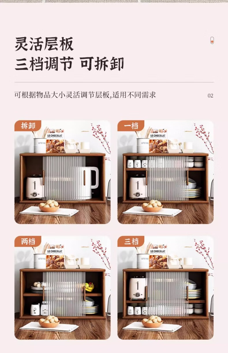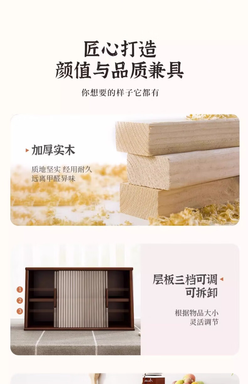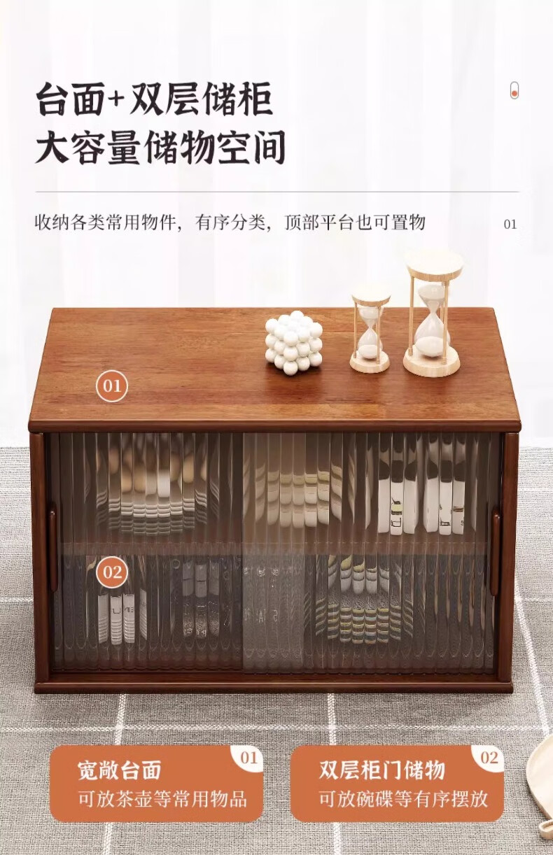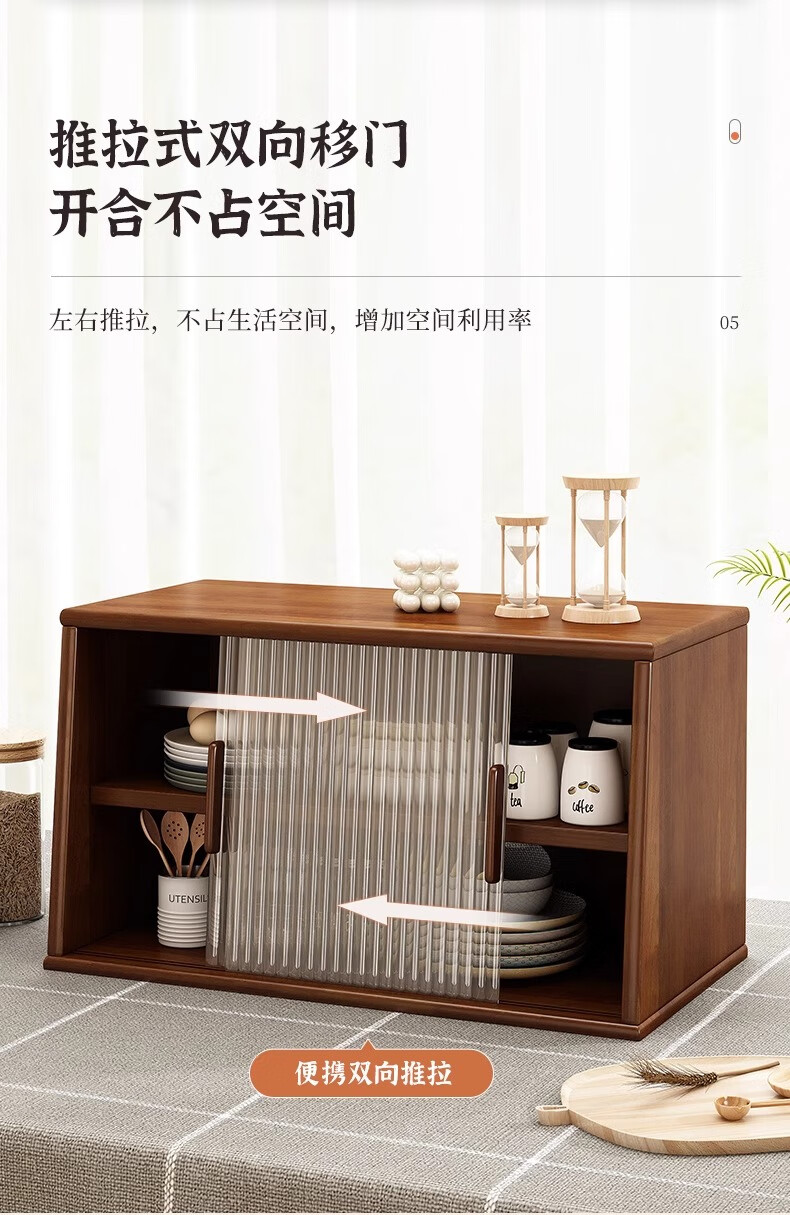 Yijiada Japanese solid wood sideboard tabletop storage cabinet cupboard walnut color dining table storage rack countertop storage rack four layers of varnish solid wood color 67CM with bottom grid