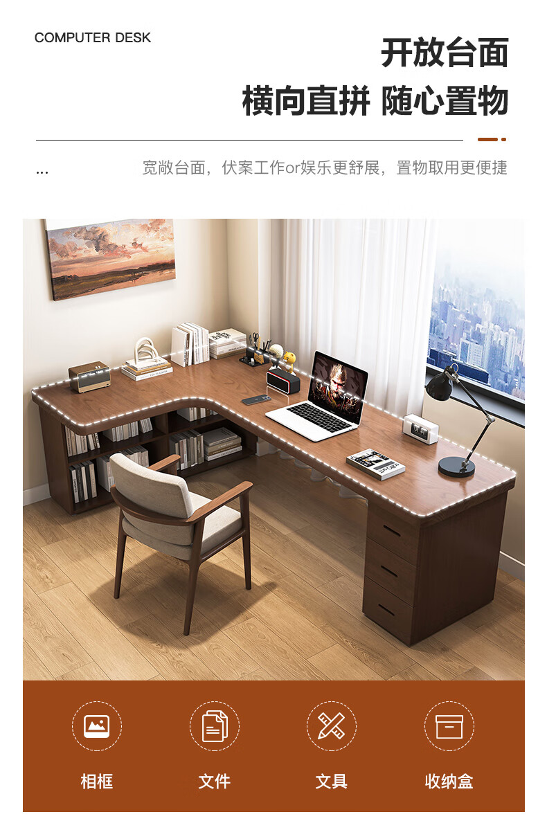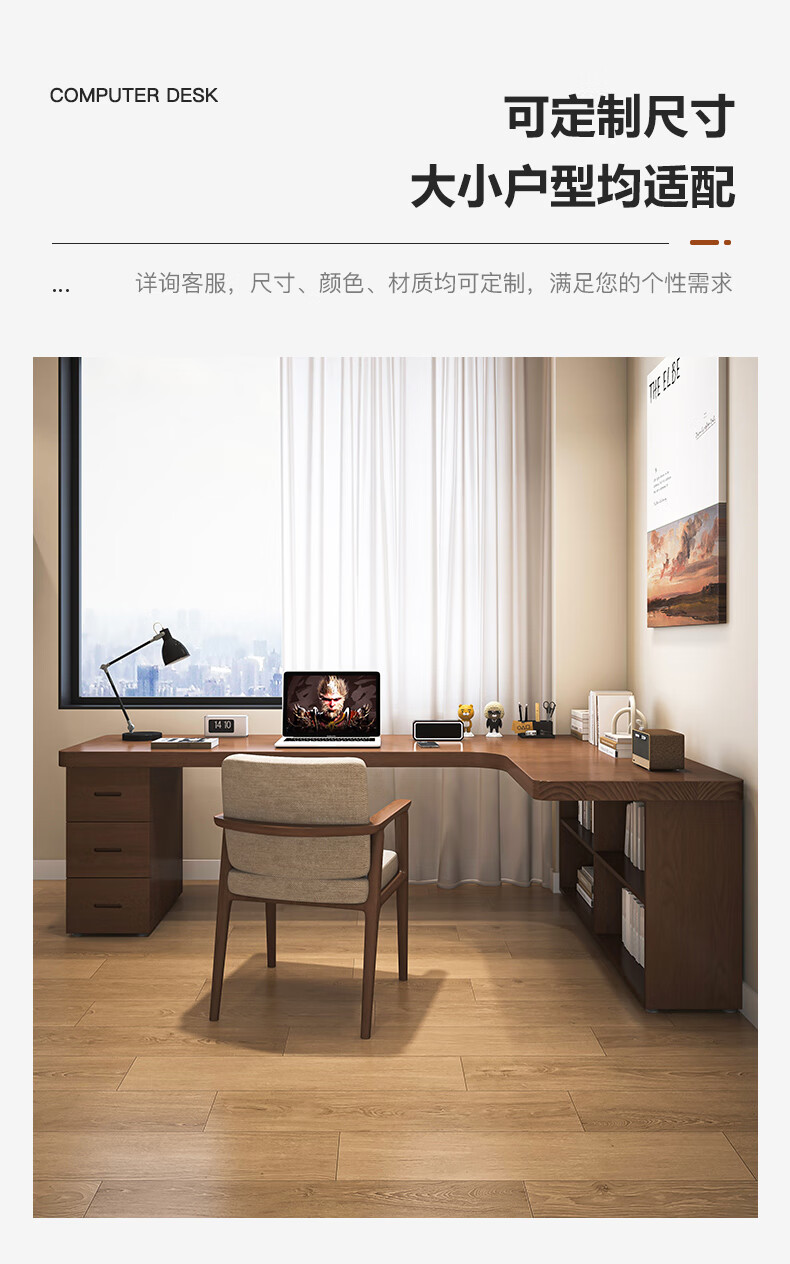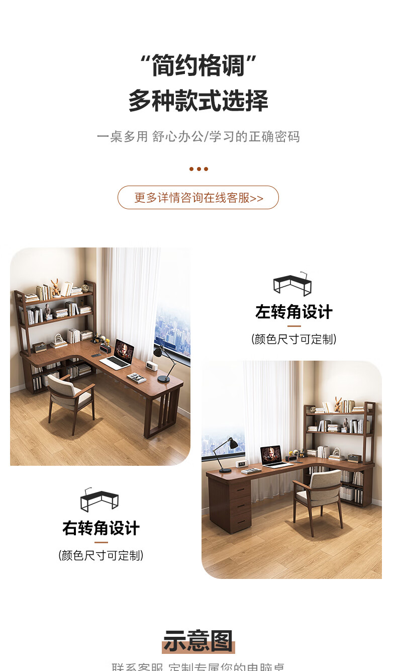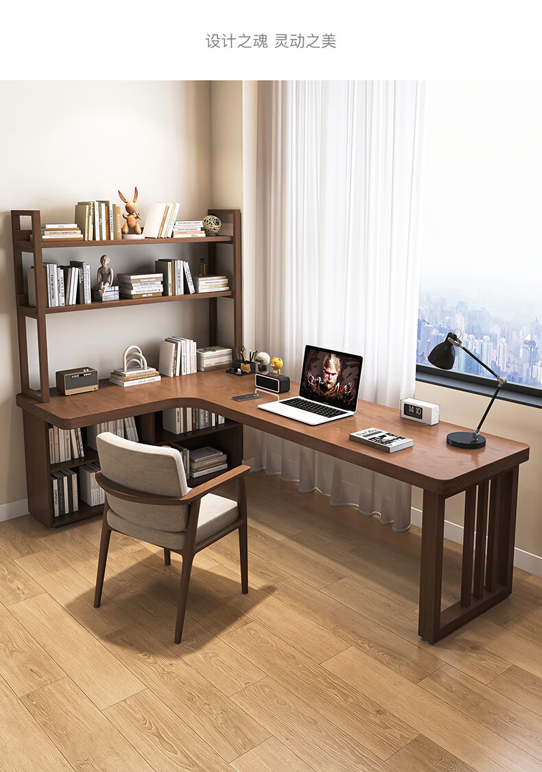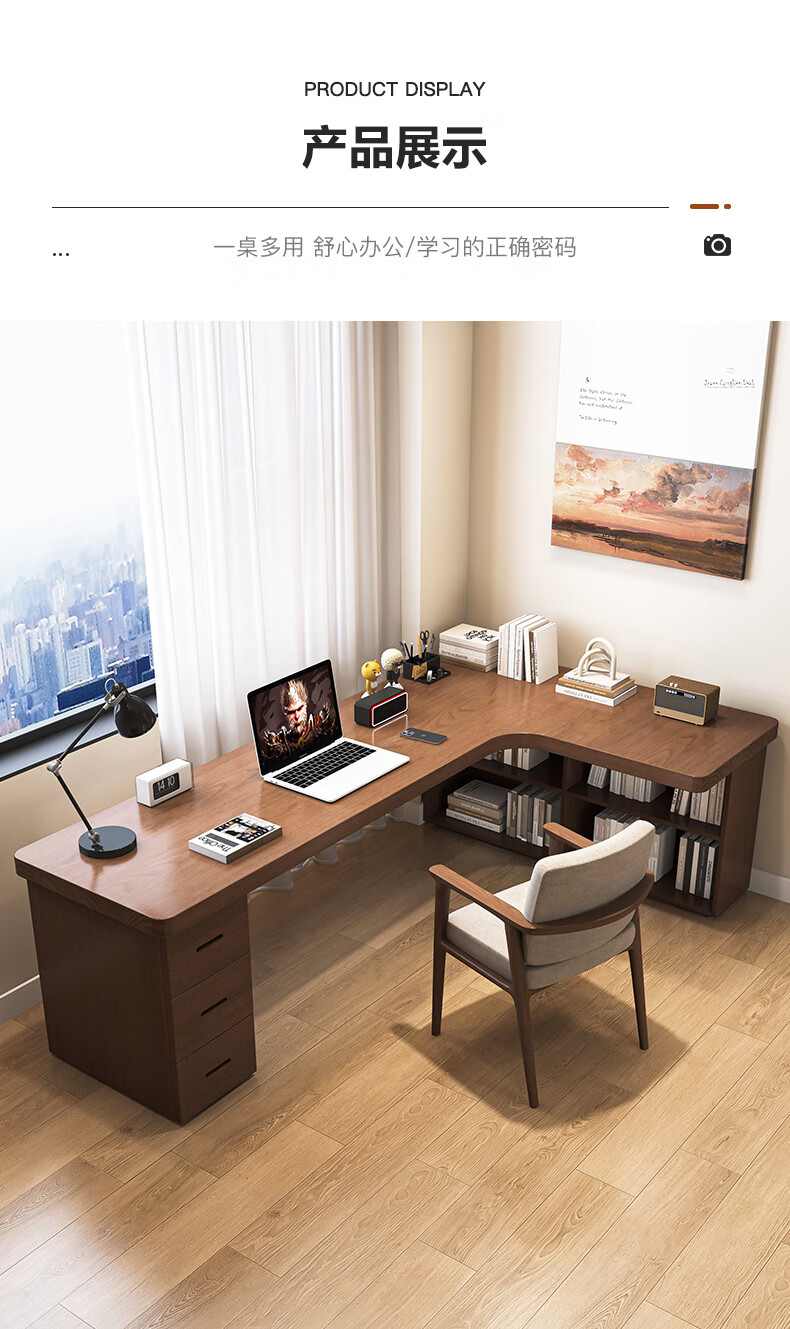 Guoman all solid wood corner computer desk desktop home student desk bedroom L-shaped double corner desk with bookshelf 140*120*55*75 drawerless cabinet + bookshelf luxury model