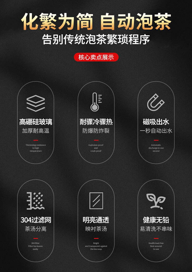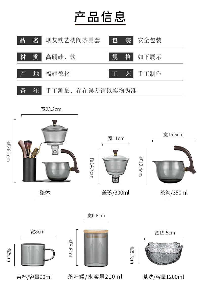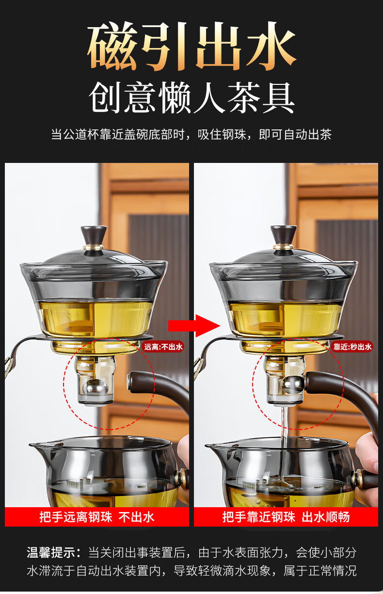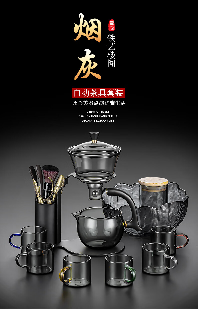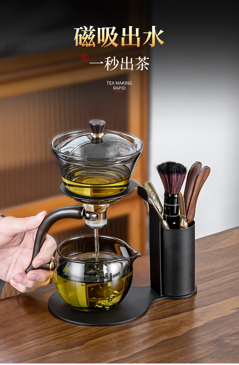 Zhengyang lazy glass automatic tea set set household complete set of magnetic tea making artifacts heat-resistant iron easy brewing rack simple and modern ash wrought iron pavilion/songlu + 6 cups + cup holder