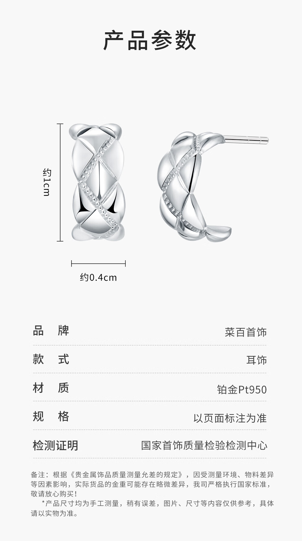 Caibai Jewelry Platinum Earrings Pt950 Platinum My Style Series Retro Diamond Pattern Earrings Price BJ Platinum Earrings Approximately 4.78g