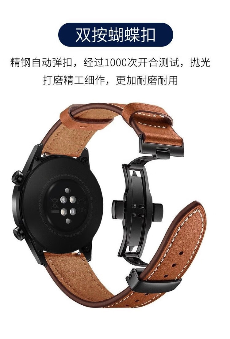 Huawei genuine leather watch strap GT5/GT4/gt6 butterfly buckle first layer cowhide Watch4pro business original autumn and winter model calfskin butterfly buckle-stainless steel self-elastic black black GT5/GT6/GT5pro 46 dial 22mm