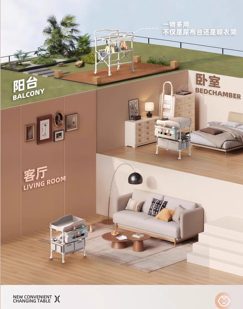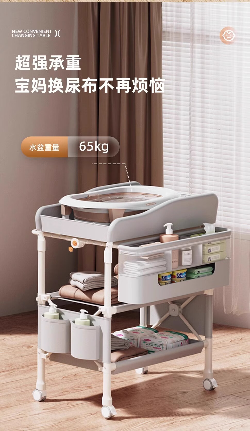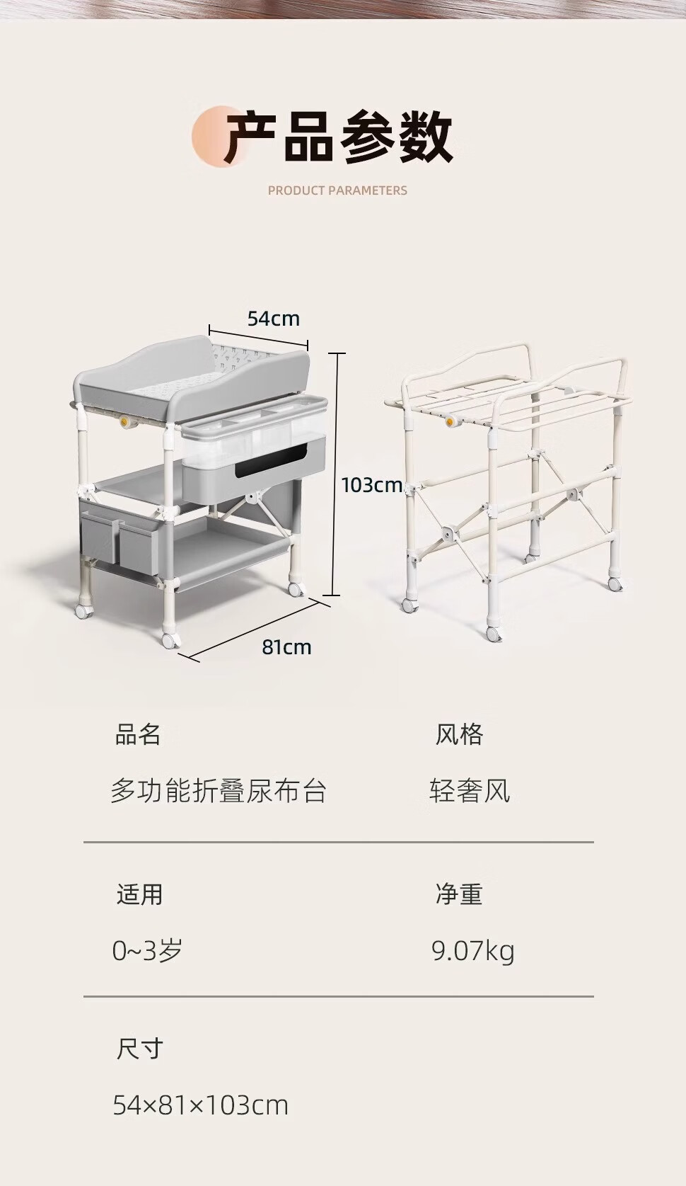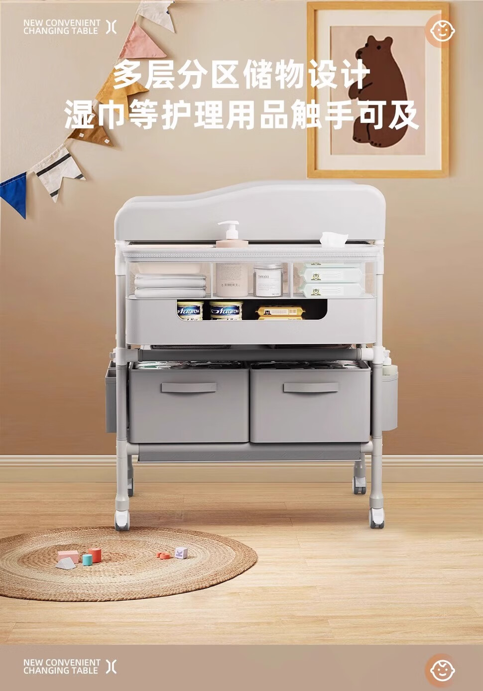 DEARVADER diaper table baby care table portable multi-functional foldable bathing baby bed diaper changing touch table basic toy model - light gray