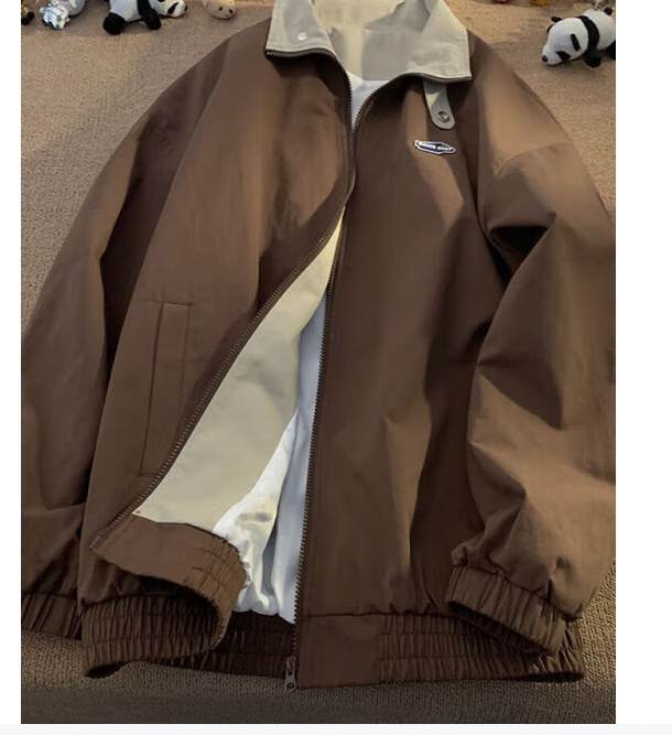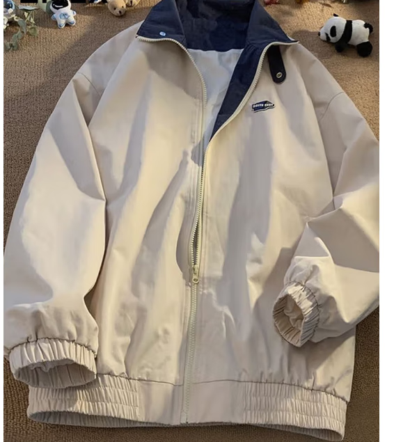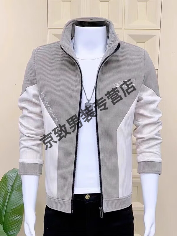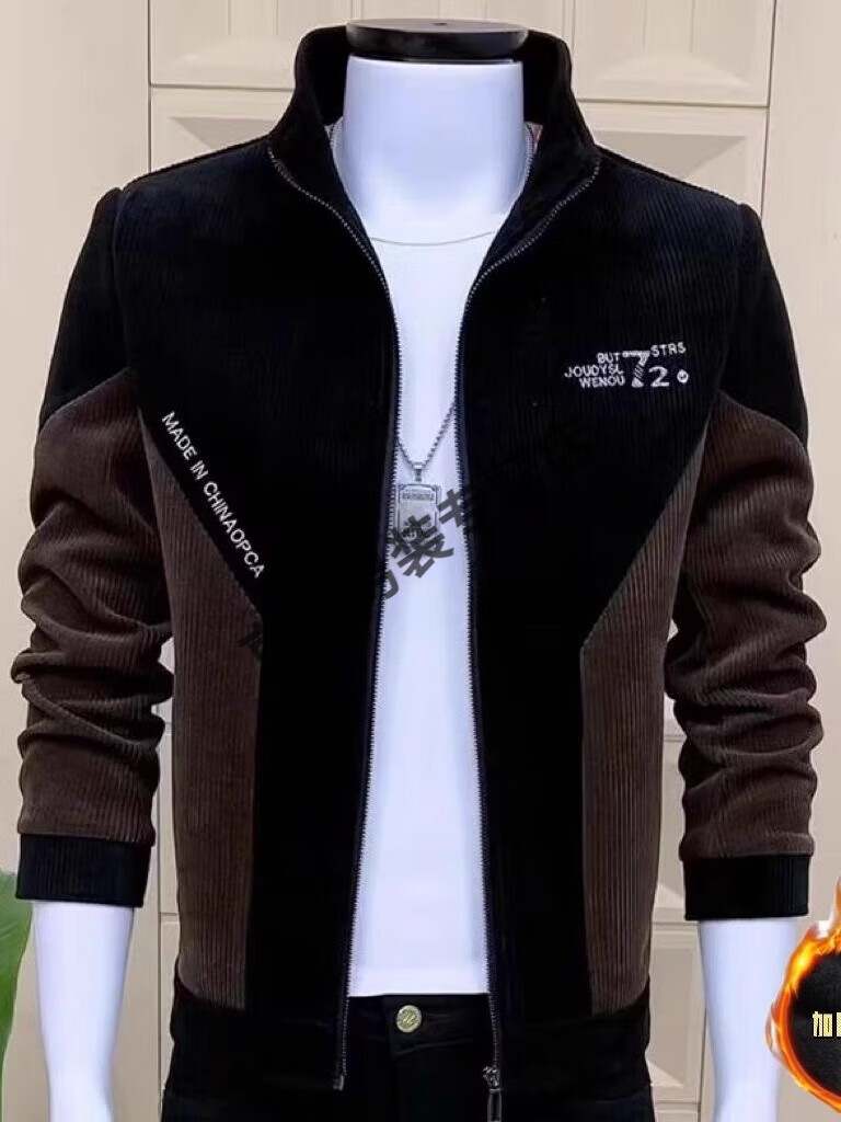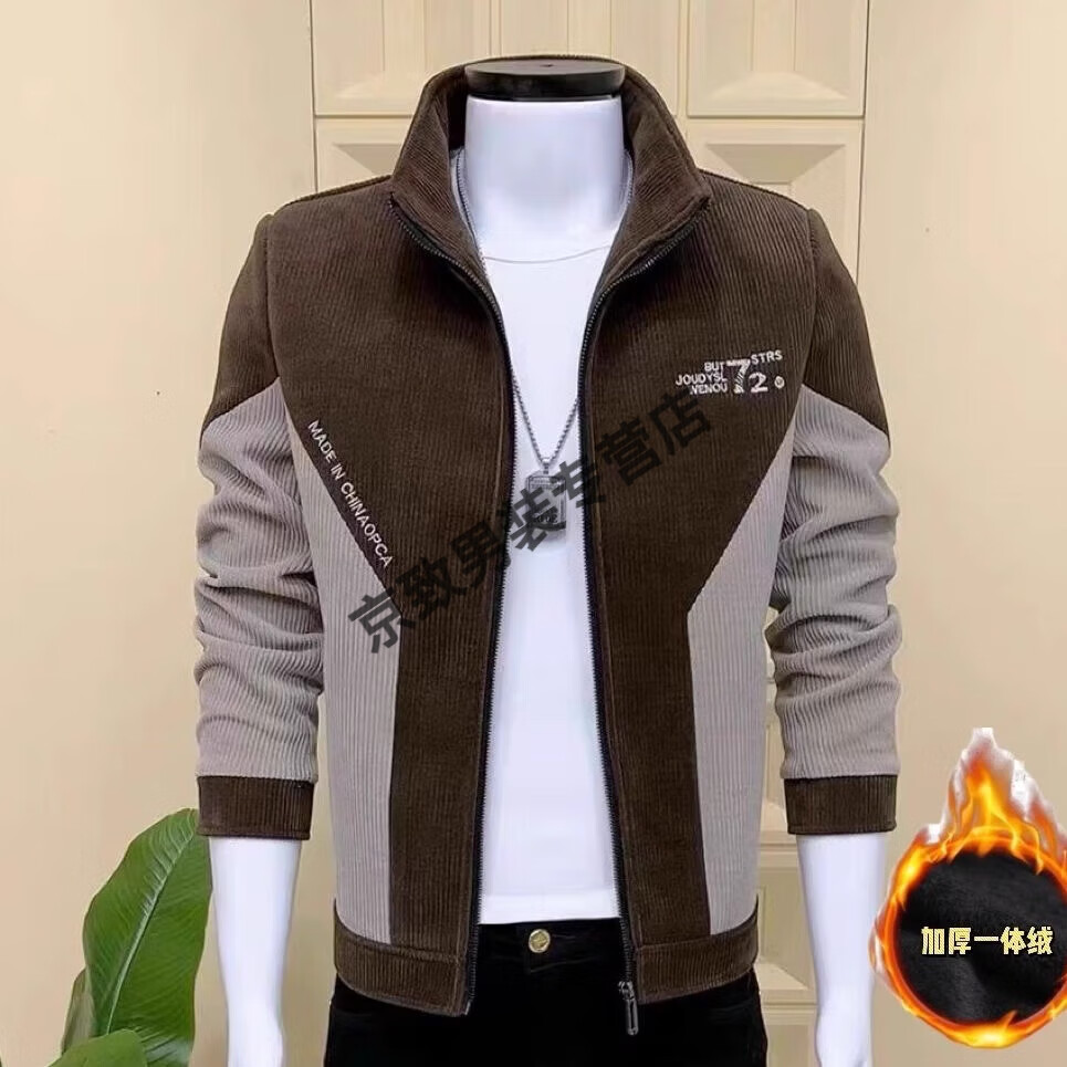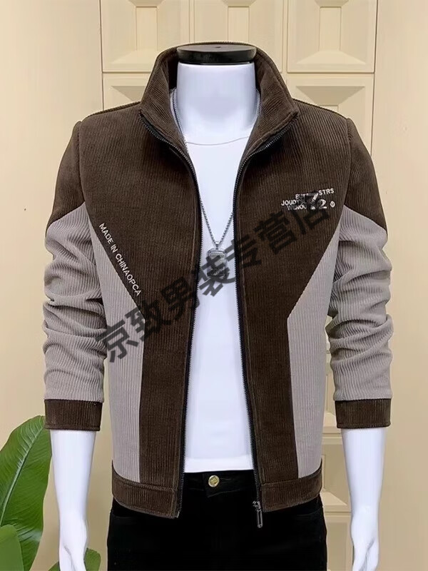 LAXSESU2025 Spring and Autumn New Men's Jacket Plus Velvet Autumn and Winter Slim Stand Collar Color Matching Casual Youth Jacket Apricot Style Regular XL 121-140Jin Jin is equal to 0.5 kg