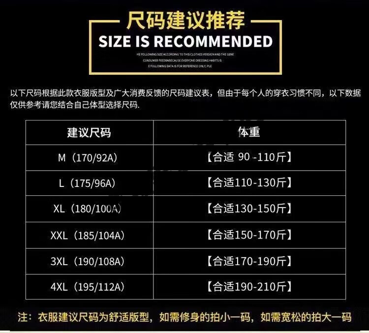 China (cm) 160-165/84-86 165-170 / 88-90 167-172 / 92-96 168-173 / 98-102 170-176 / 106-110