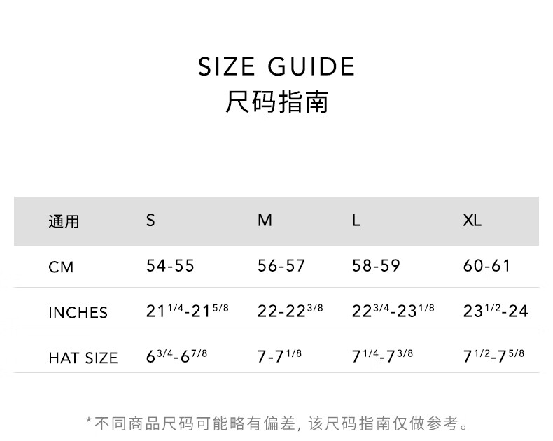 China (cm) 165 / 88-90 170 / 96-98 175 / 108-110 180 / 118-122 185 / 126-130