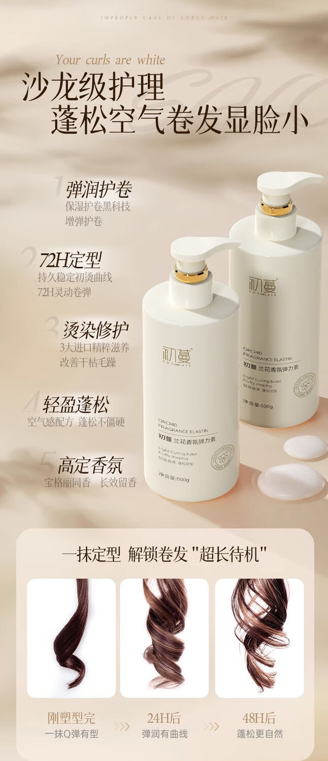 Special elastin for early curly hair, moisturizing, styling, perming, dyeing, repairing, removing frizz, fluffy, long-lasting fragrance, curl care essential oil for men and women, buy one get one free - 2 bottles of Orchid Elastin