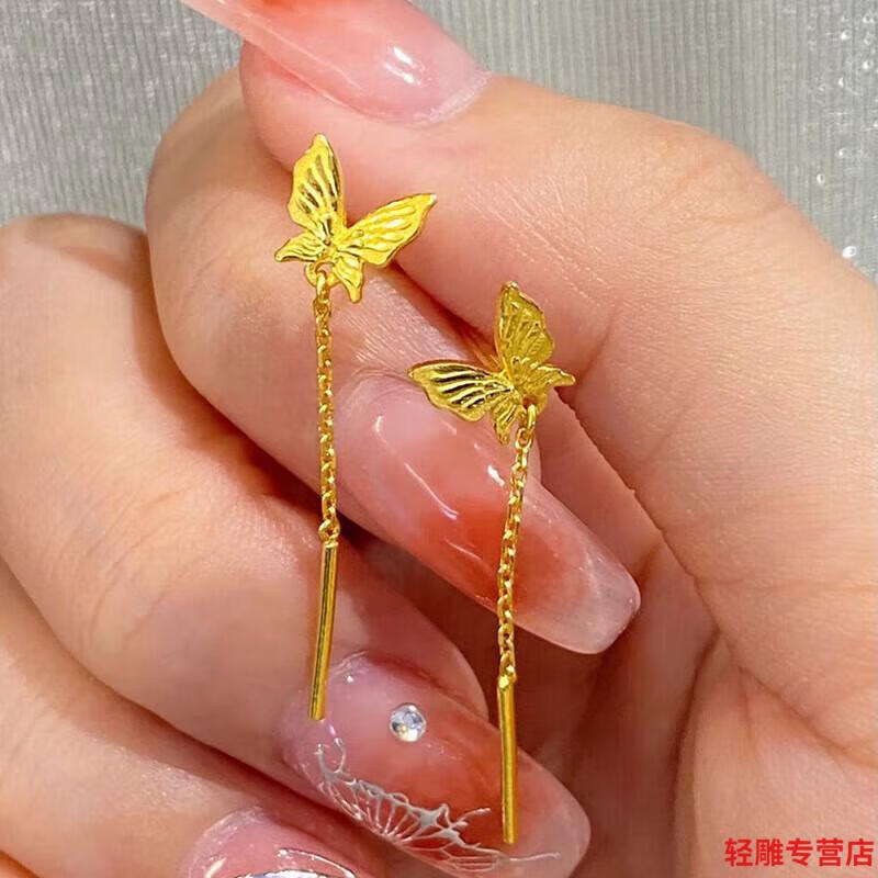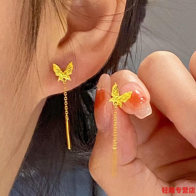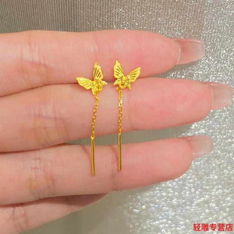 AYD24K pure gold butterfly earrings new long tassel earrings for women gold 5G niche design earrings 0.01g butterfly tassel earrings
