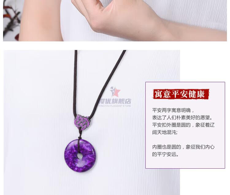 Yingyou Natural Comfort Couple Crystal Peace Buckle Men's and Women's Buddha Bead Necklace Pendant Suji Stone Peace Buckle Pendant Women's Peace Buckle Purple