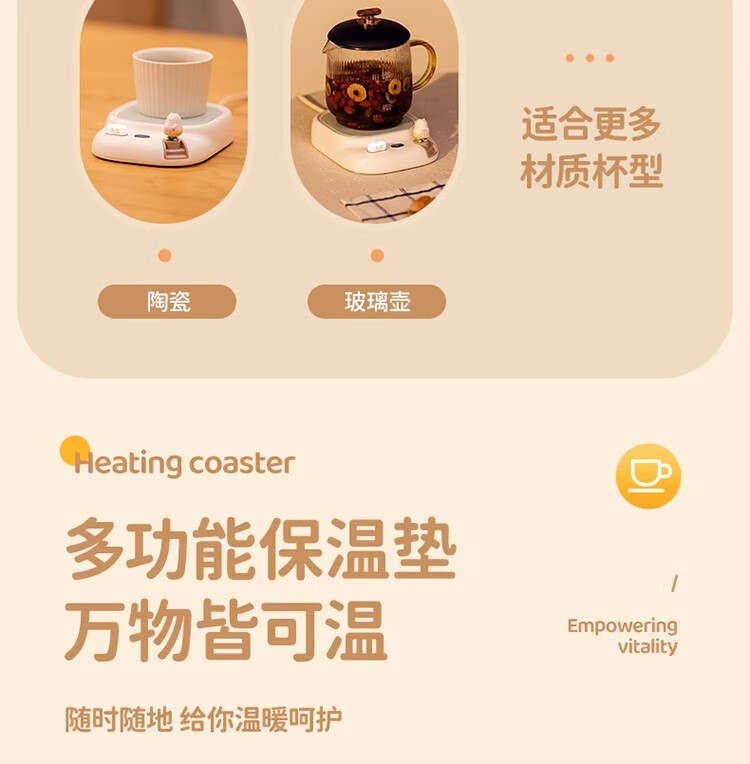 Aonian Tangya Heating Coaster 55 degrees constant temperature adjustable household thermal water cup base smart hot milk artifact khaki (warm coaster) 1L