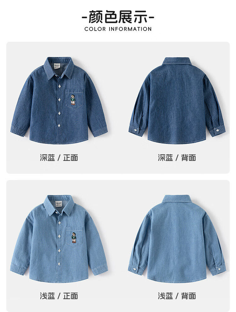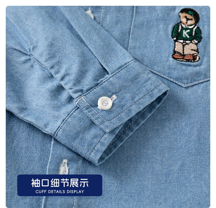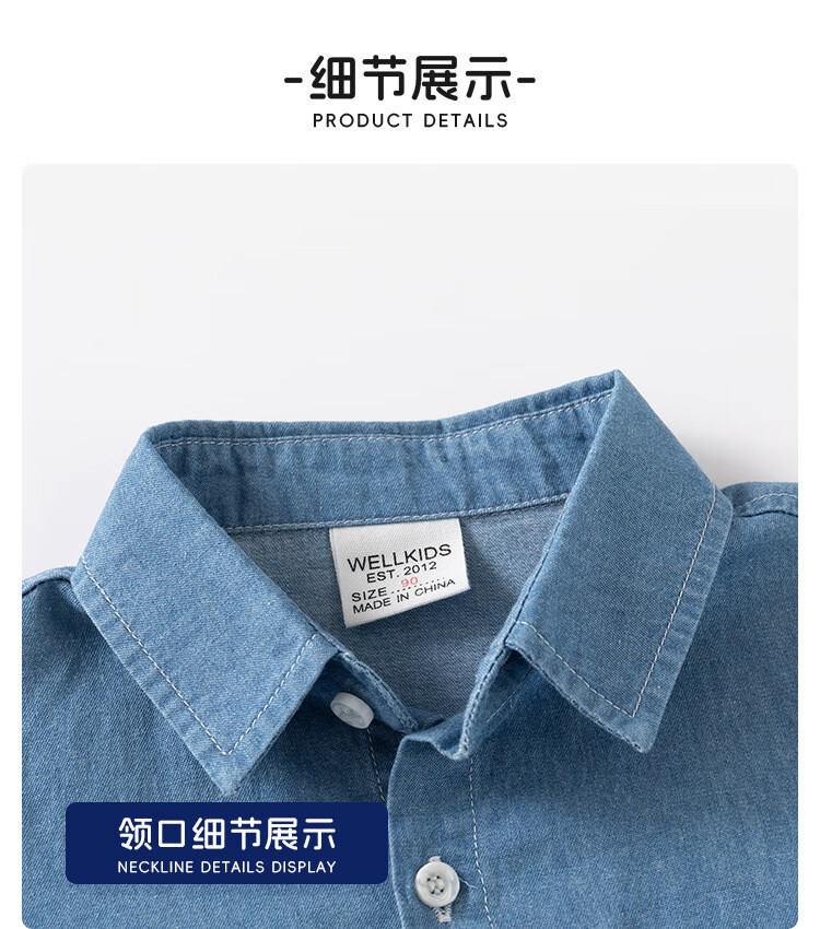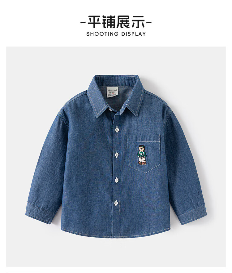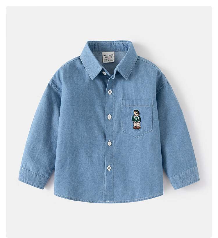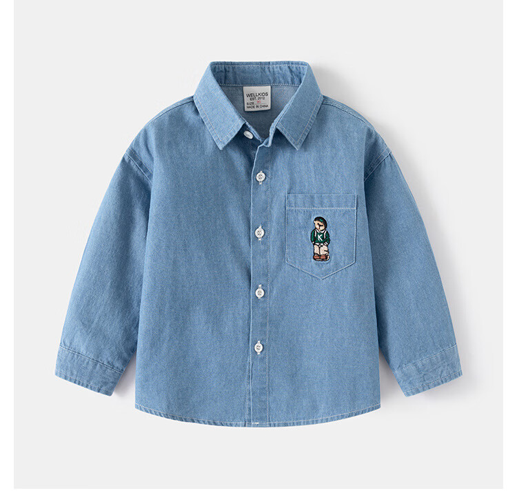 WELLKIDS boys' denim shirt outer wear trendy children's clothing top spring new children's long-sleeved shirt baby top light blue 120