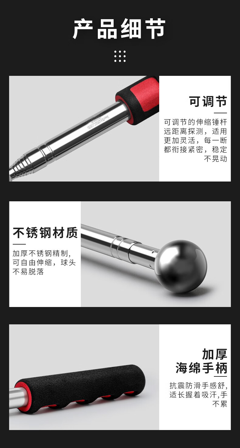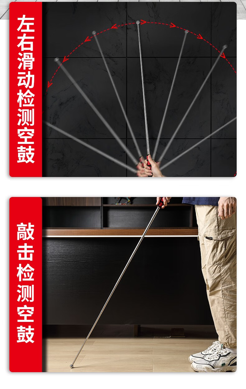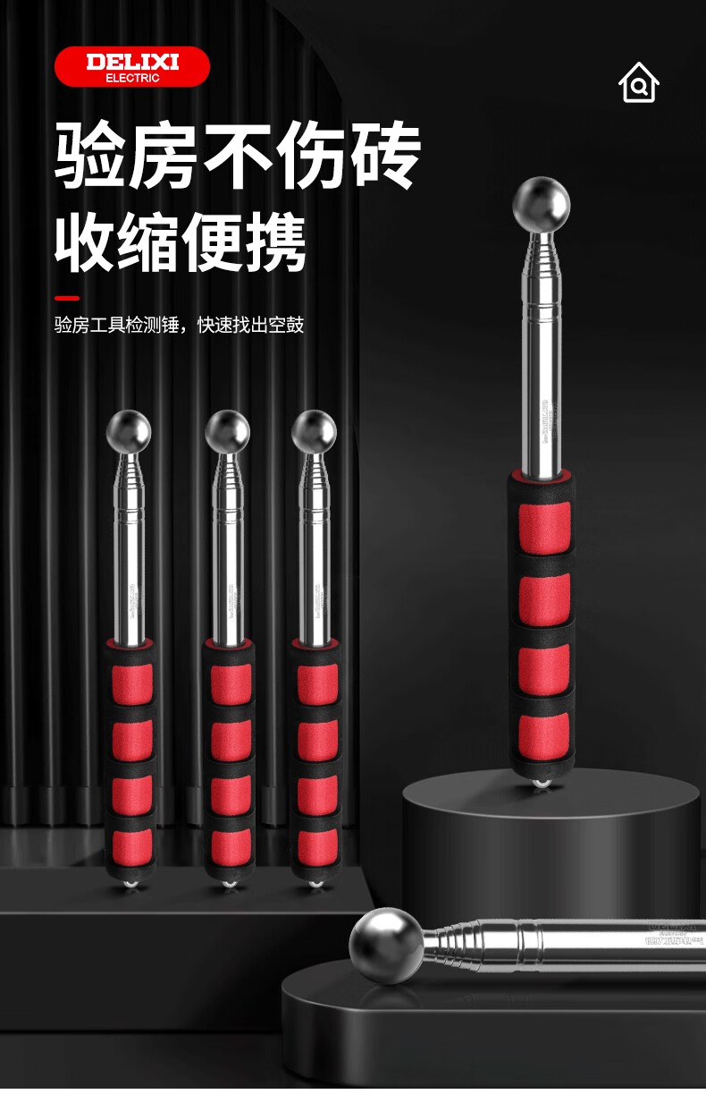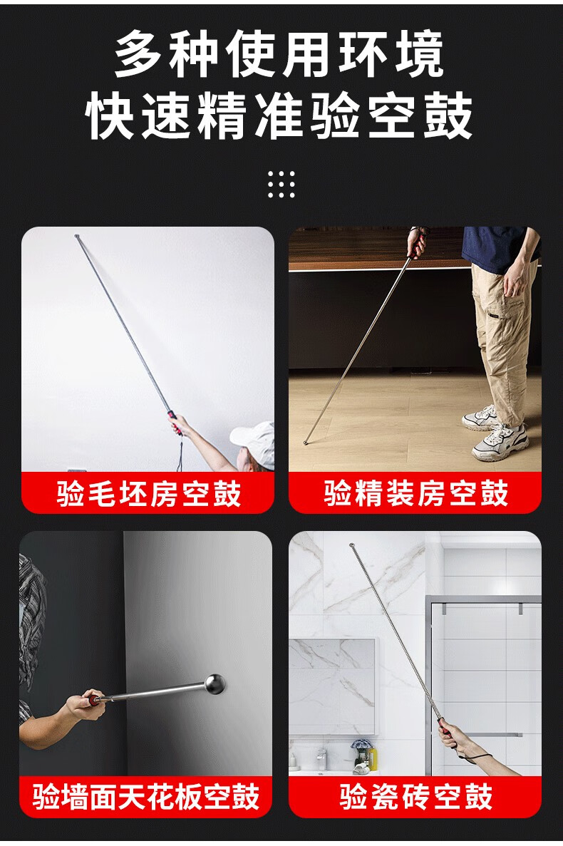 DELIXI ELECTRIC Hollow Drum Hammer Home Inspection Tool Set Bold Telescopic New House Acceptance Inspection Stick Knocks on Ceramic Tiles 160CM Sleek and Will Not Damage the Wall Free Marker