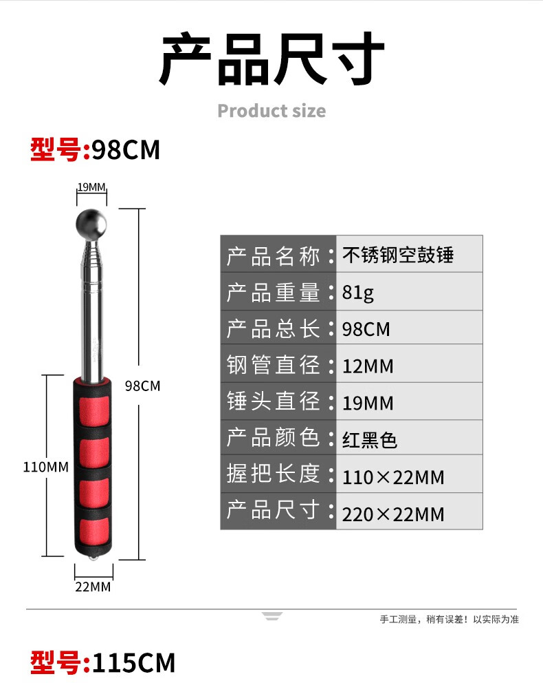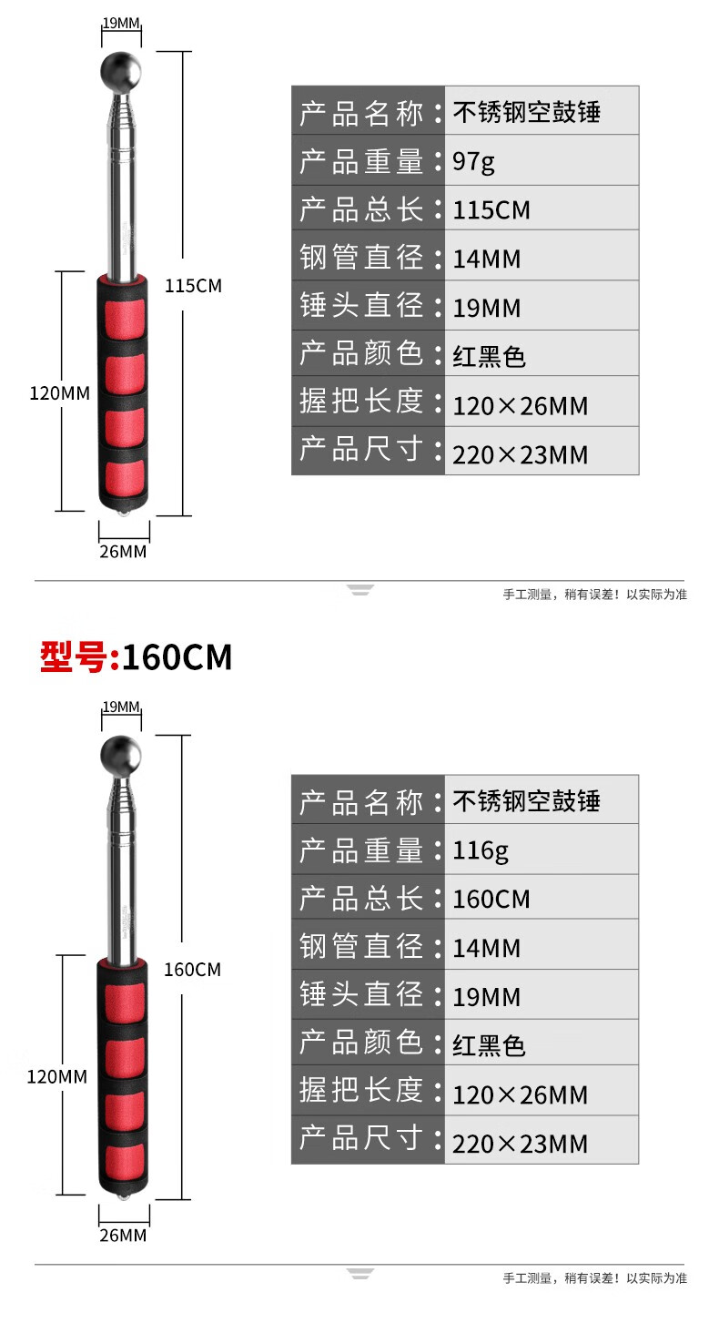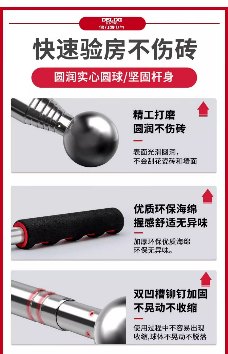 DELIXI ELECTRIC Hollow Drum Hammer Home Inspection Tool Set Bold Telescopic New House Acceptance Inspection Stick Knocks on Ceramic Tiles 160CM Sleek and Will Not Damage the Wall Free Marker
