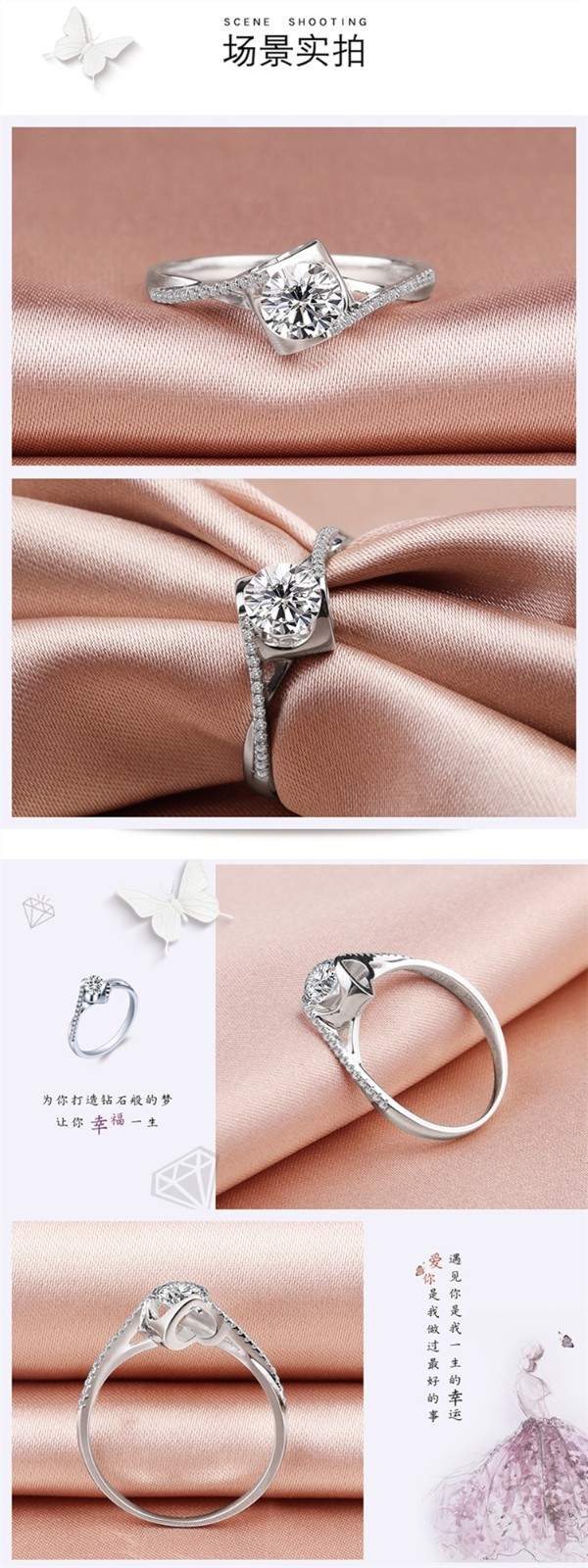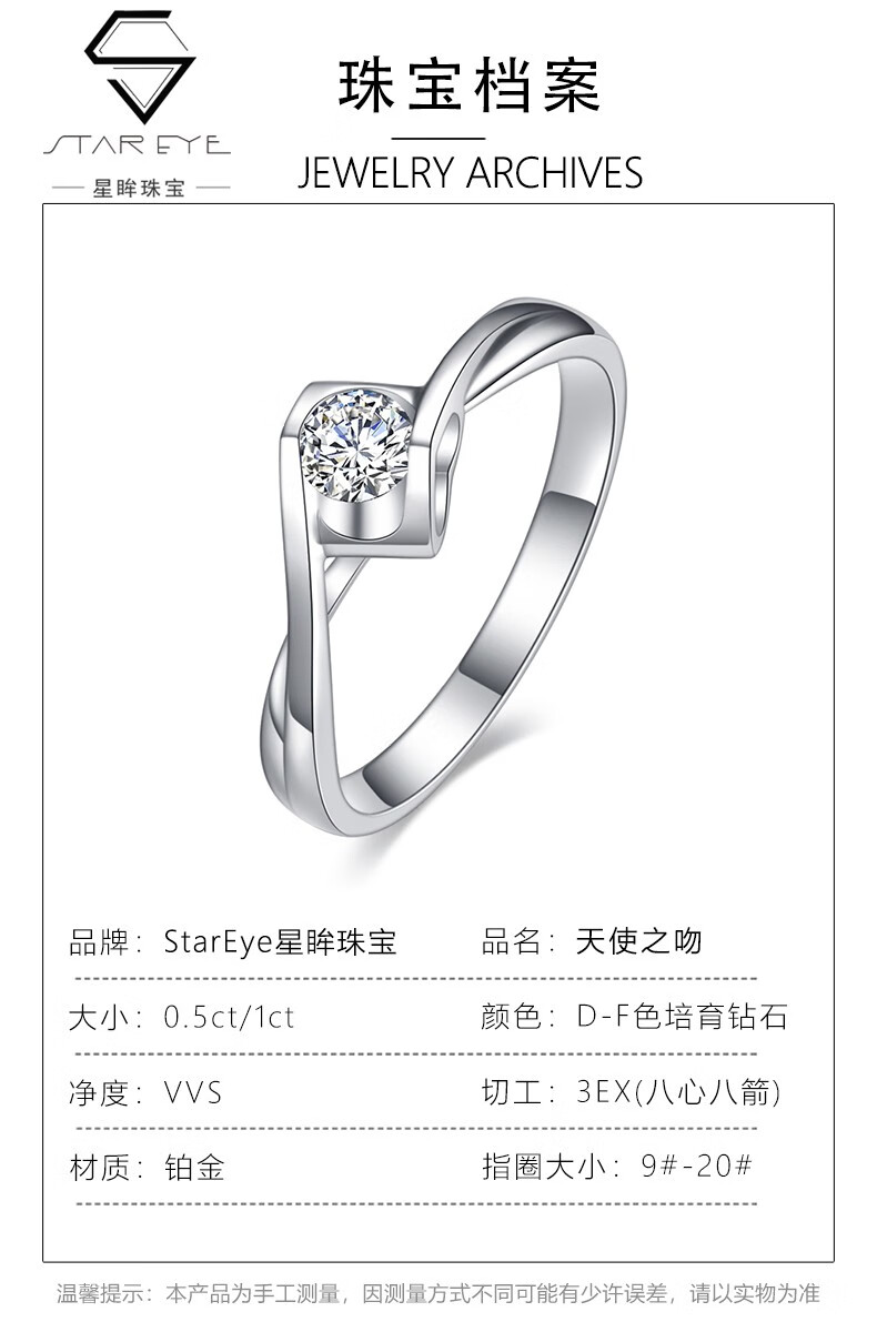 AVHE platinum PT950 diamond ring female angel's kiss micro-paved artificially cultivated diamond ring Mo Sanqiu wedding gift Chinese Valentine's Day 80 points D color cultivated diamond + micro-paved angel's kiss
