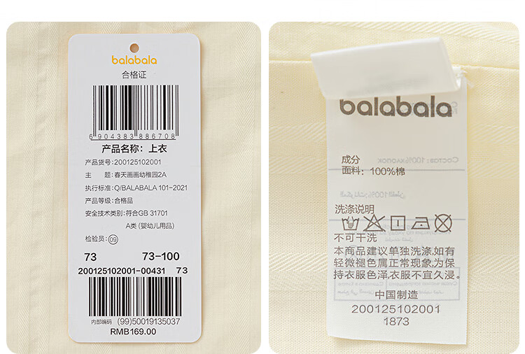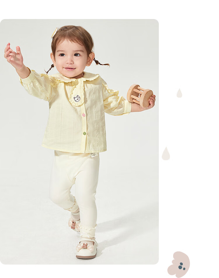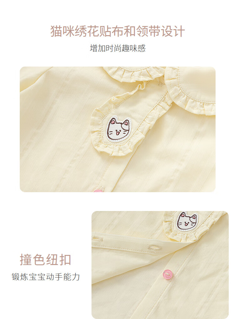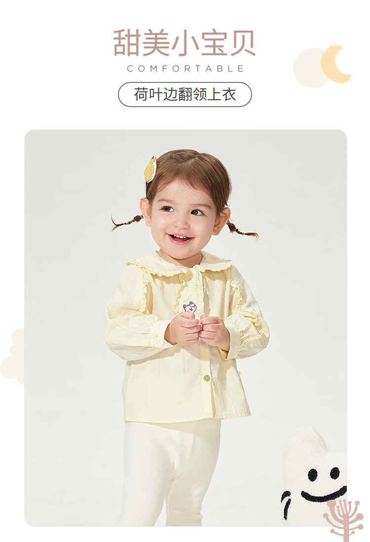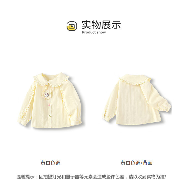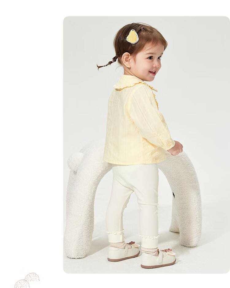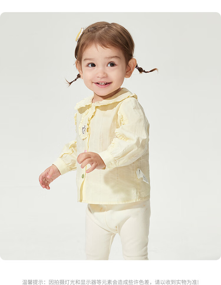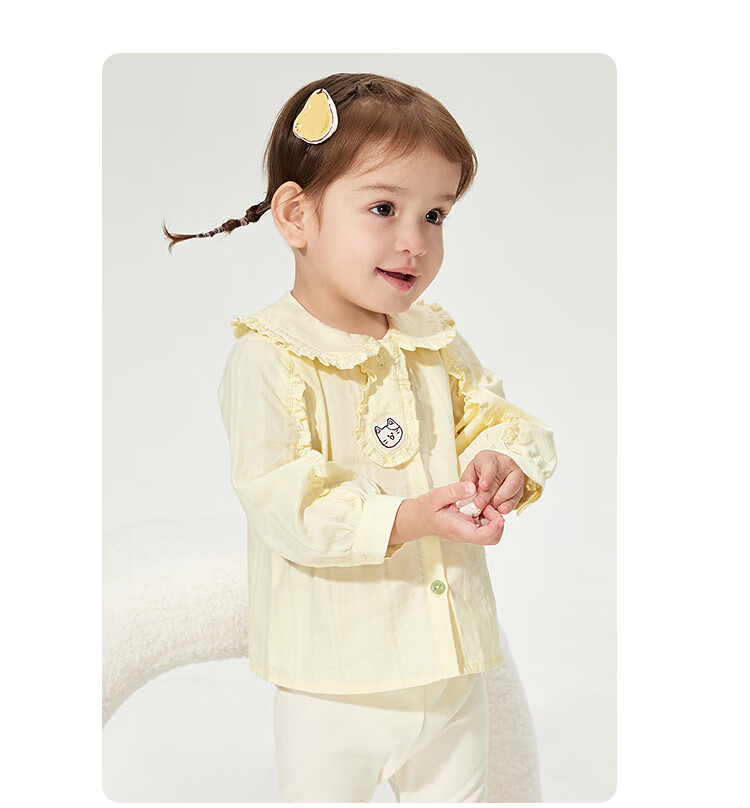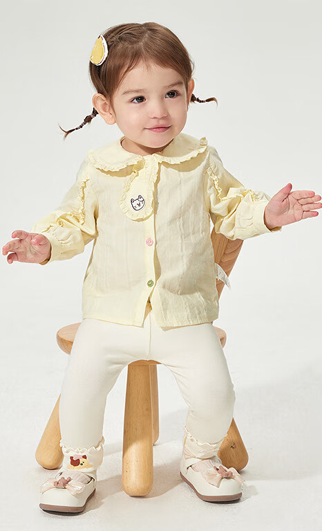 Balabala children's clothing baby long-sleeved shirt baby top girls ruffled lapels sweet literary temperament cute yellow and white tone 00431 73