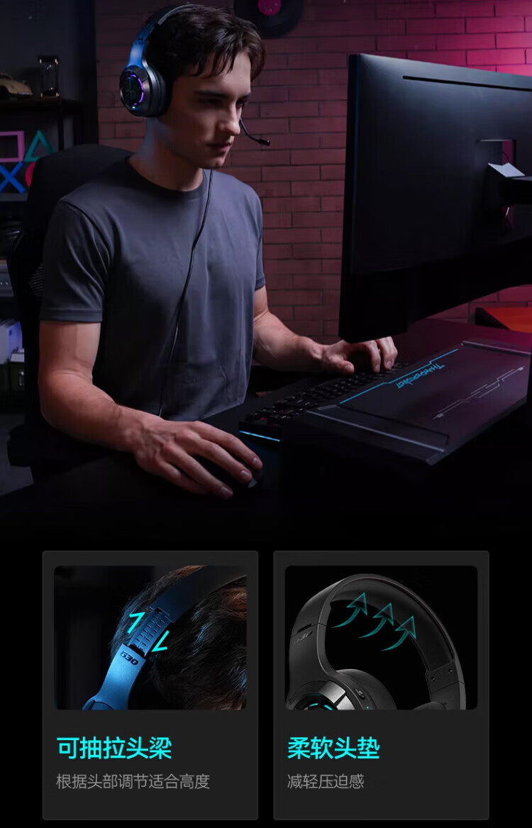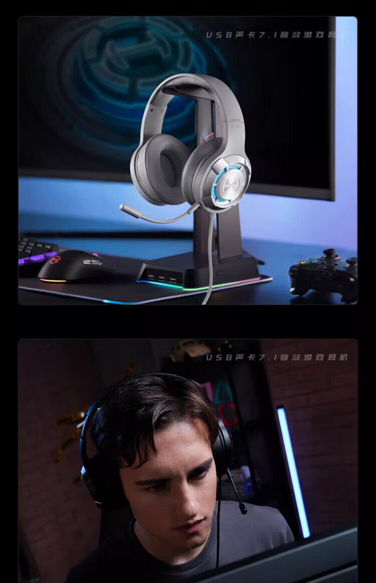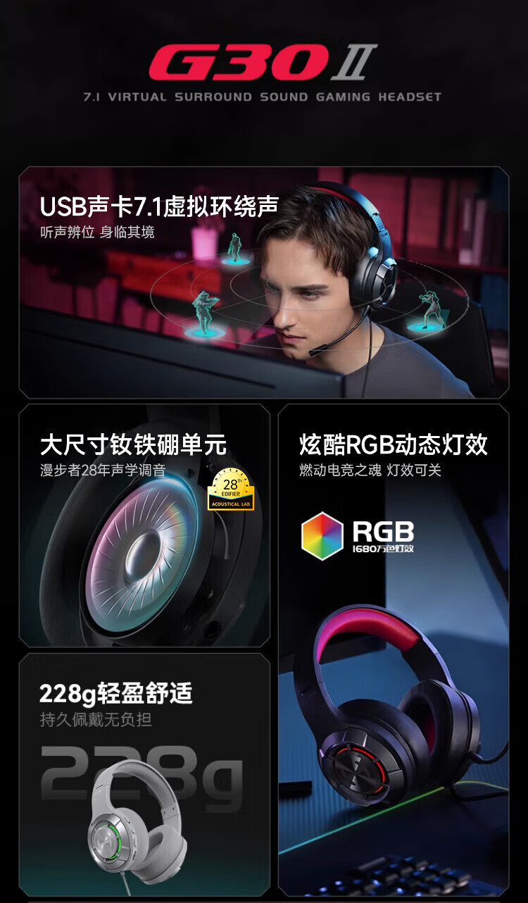 Edifier (EDIFIER) HECATE G30II headset wired e-sports gaming computer headset notebook eating chicken csgo music online class high-quality microphone FPS listening position identification e-sports pink cat ear version + headphone stand