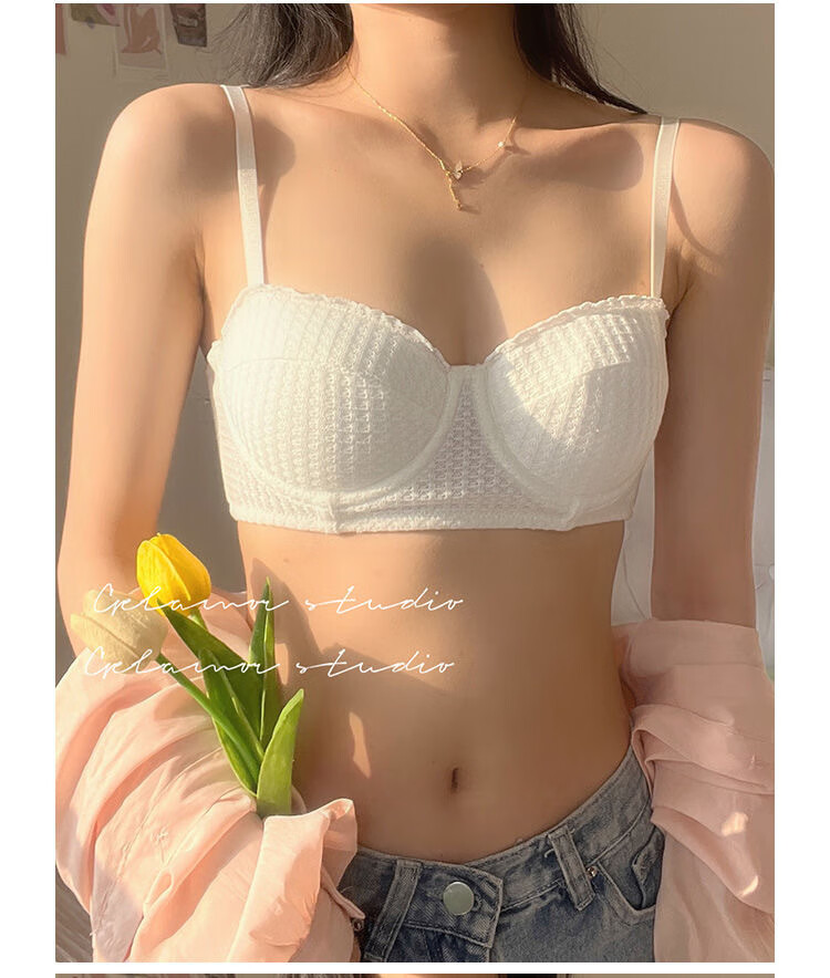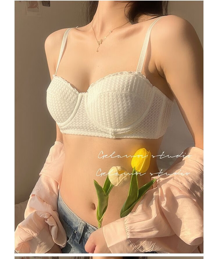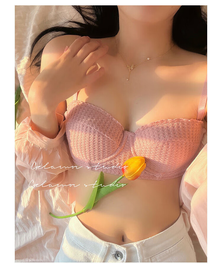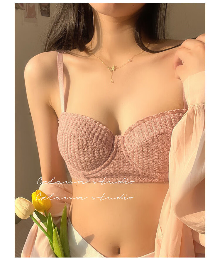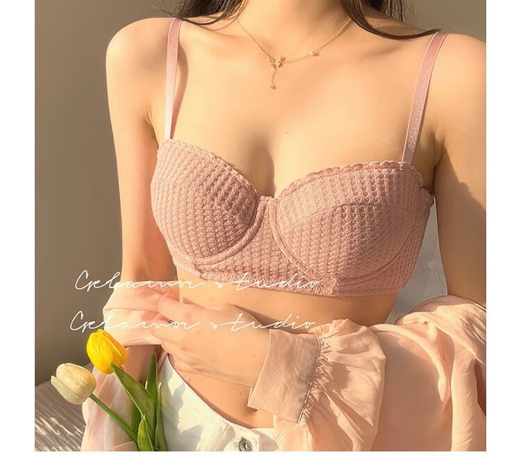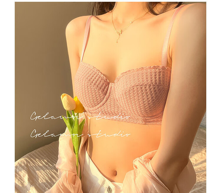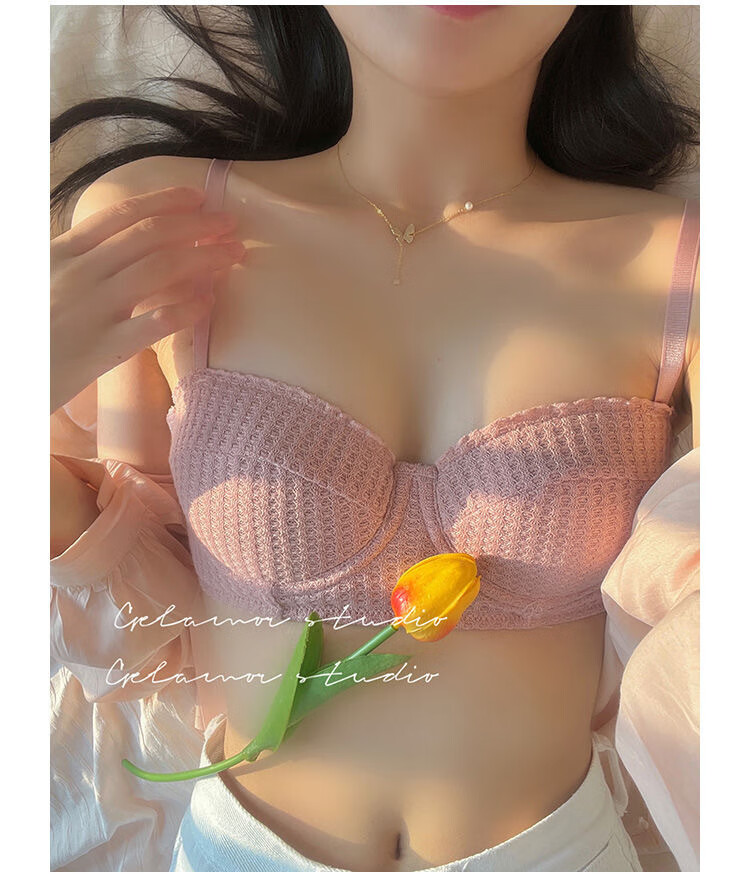 Victoria Palace Sexy Push Up Half Cup Bra Set French Soft Wire 1/2 Cup Thin Cotton Small Breast Push Up Bra Set Skin Pink S