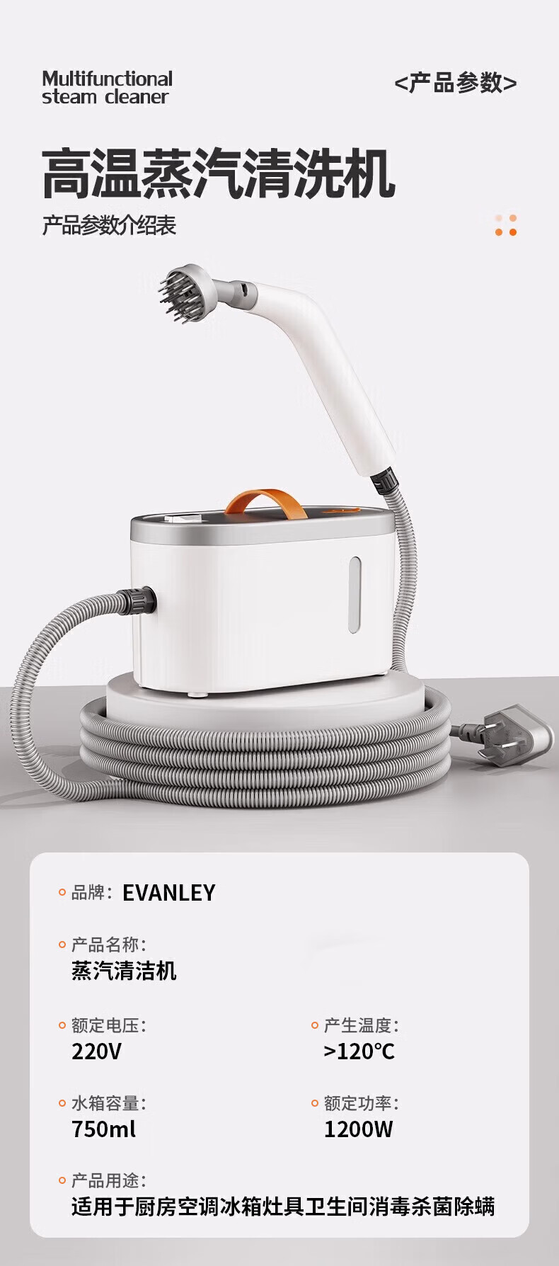 EVANLEY German high-pressure and high-temperature steam cleaner kitchen range hood air-conditioning cleaning machine household appliances household all-in-one machine multi-functional cleaning tool whole house cleaning artifact whole house cleaning machine snow mountain white
