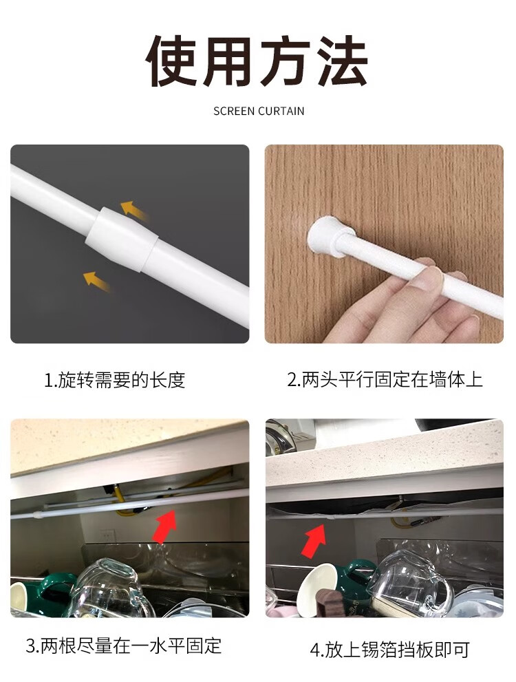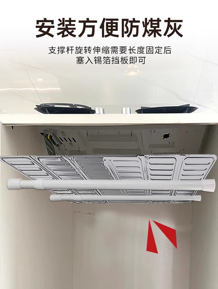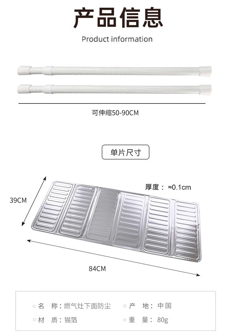 Dust-proof baffle under Yusenyi gas stove, tin foil plate, anti-coal ash, anti-drip oil, stainless steel high-temperature resistant baffle to protect bowls and chopsticks, tin foil plate + 2 telescopic rods (50-90)