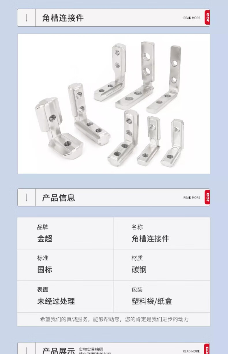 Jinchao built-in angle slot connector 2020/3030/4040/4545 aluminum profile accessories L-shaped right angle fixed European and national standard European standard 2020 (2 holes)-M5 5 sets