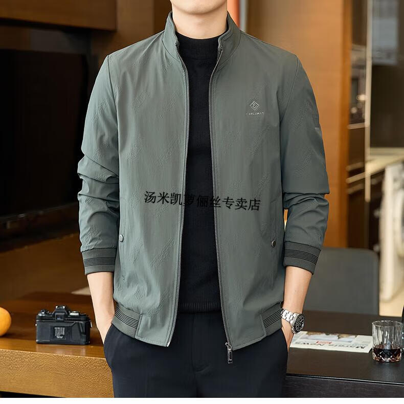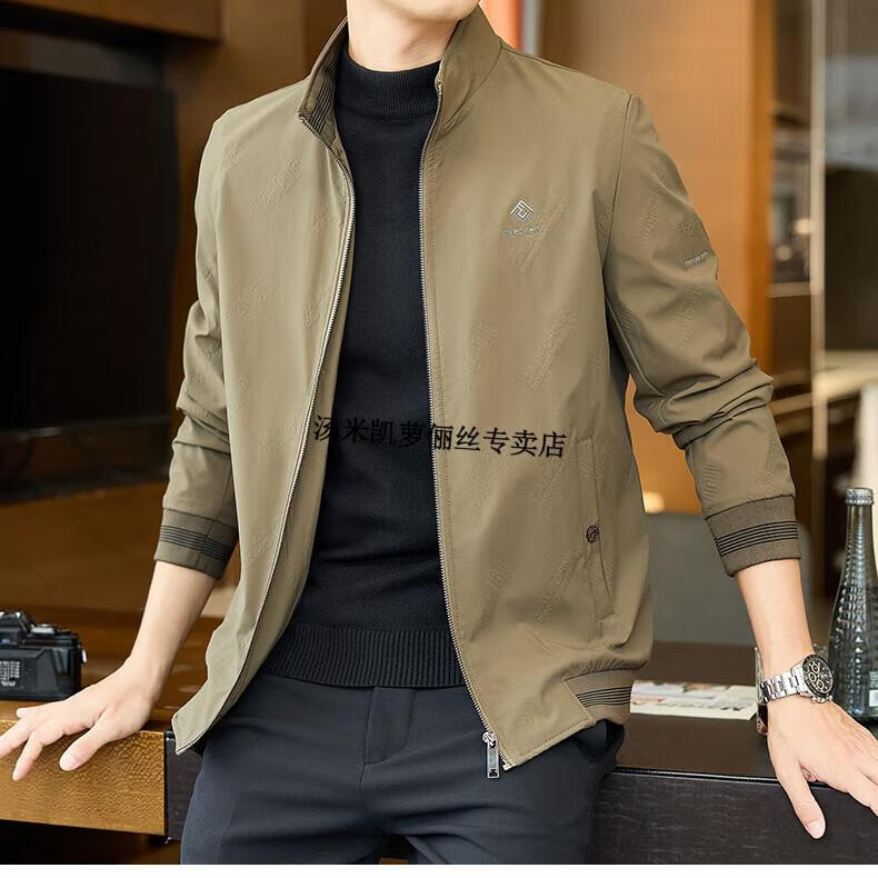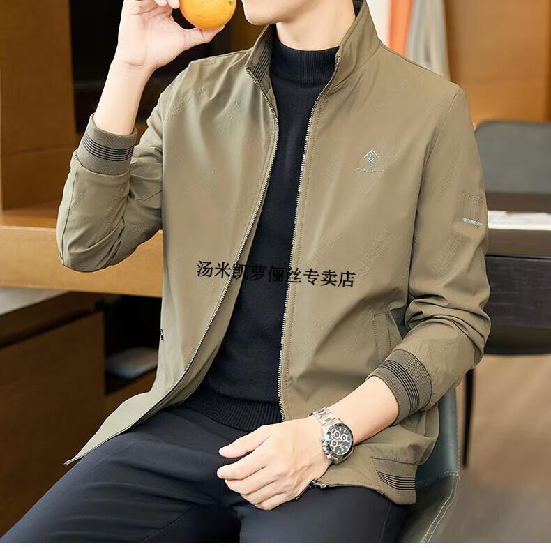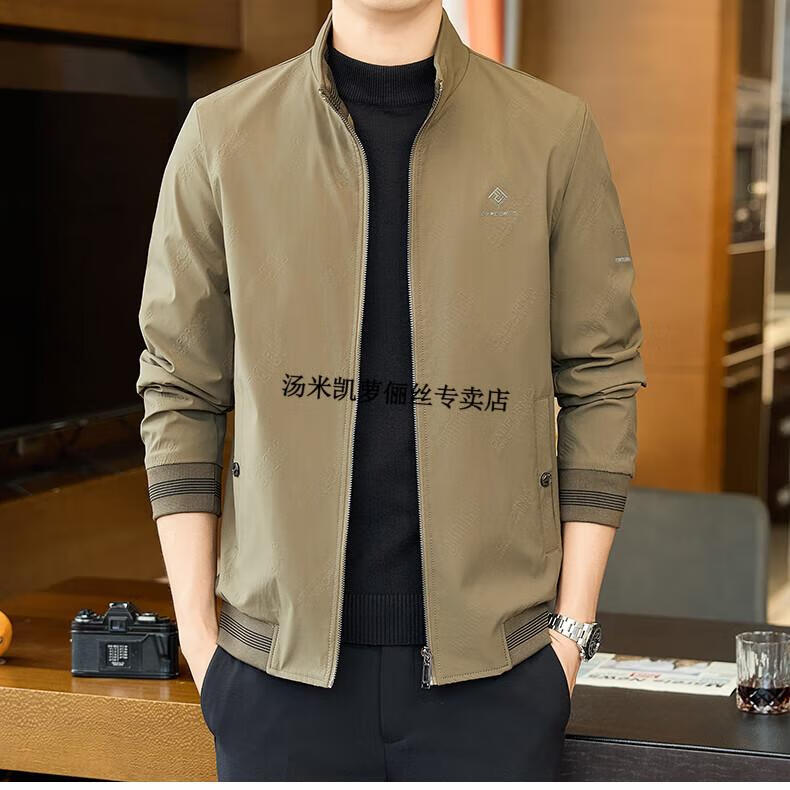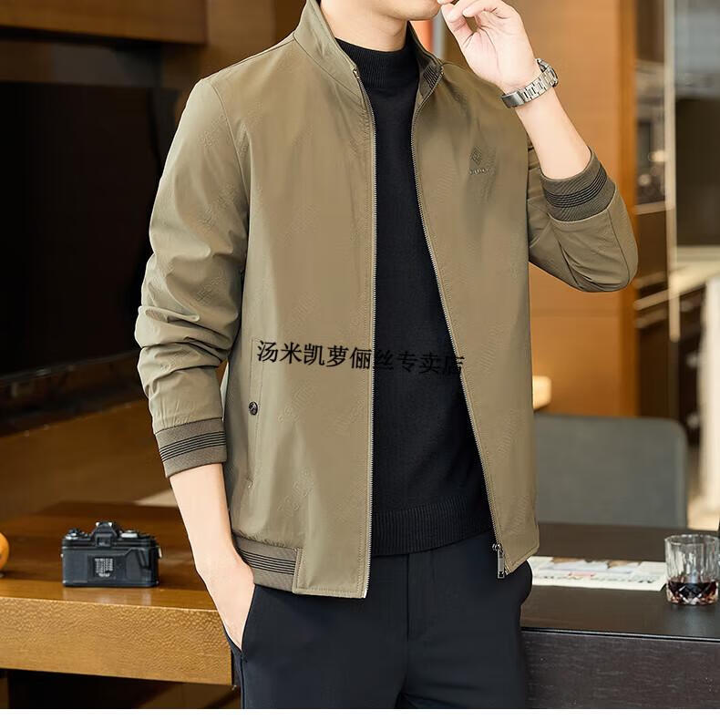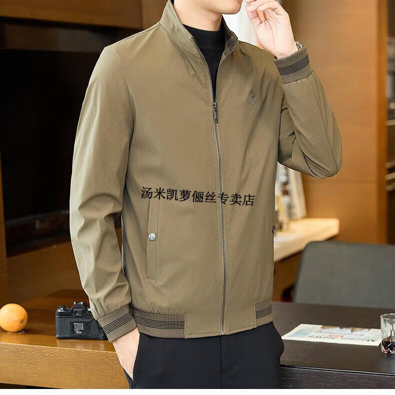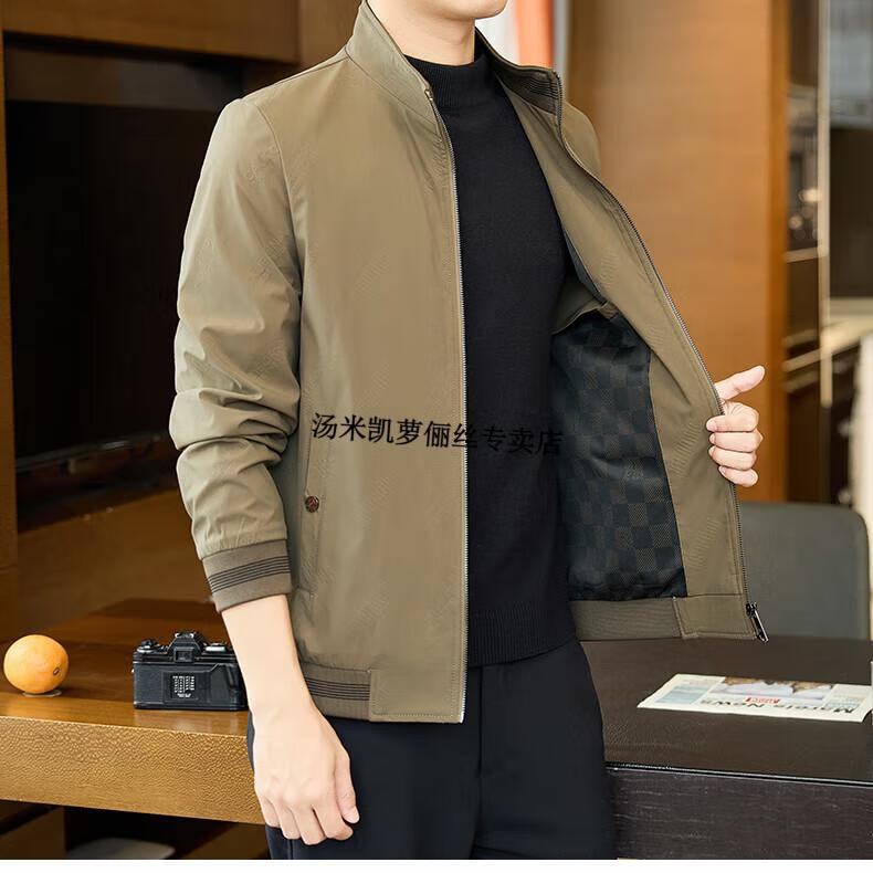 TOME BORNEK2025 New Spring and Autumn Jacket Men's Spring and Autumn Men's Middle-aged Dad Stand-up Collar Jacket Men's Early Autumn Khaki XL