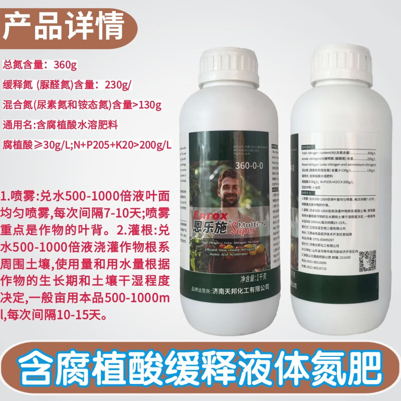 Tianbang Tianbang Enluxi liquid nitrogen fertilizer high nitrogen containing humic acid water-soluble fertilizer instead of urea field fruit and vegetable foliar fertilizer 1000g * 12 bottles (whole piece)