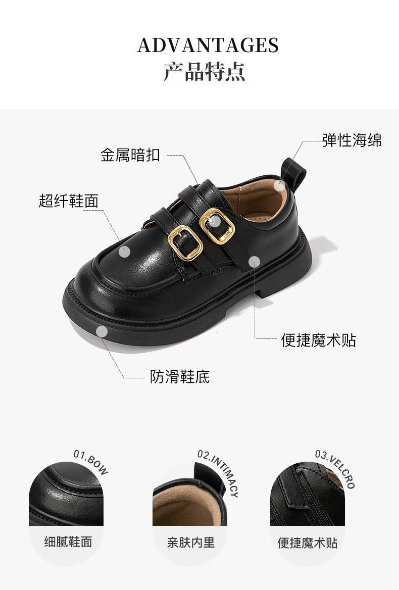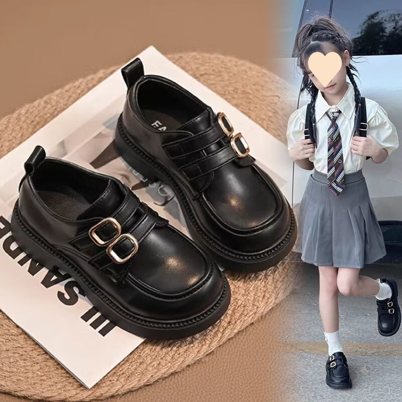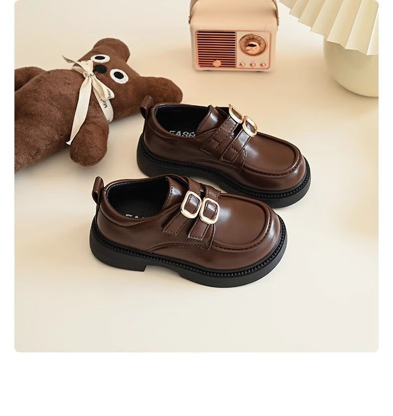 G.duck Girls' Small Leather Shoes Spring and Autumn Black Children's Performance Shoes Soft Sole British Style Student Princess Loafers for Middle and Large Children 929 Brown 34 Inner Length 20.8cm