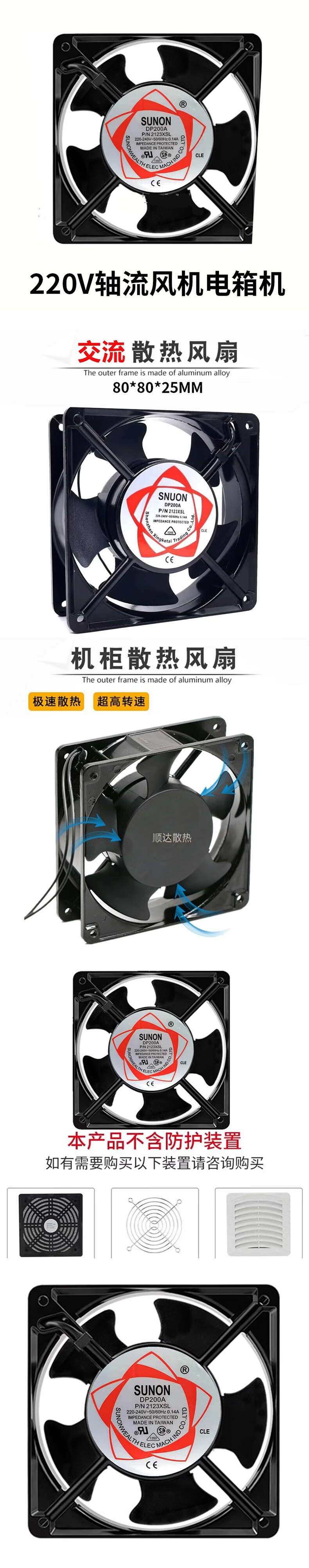 SUNON AC 220V axial flow fan electrical box cabinet industrial exhaust cooling fan