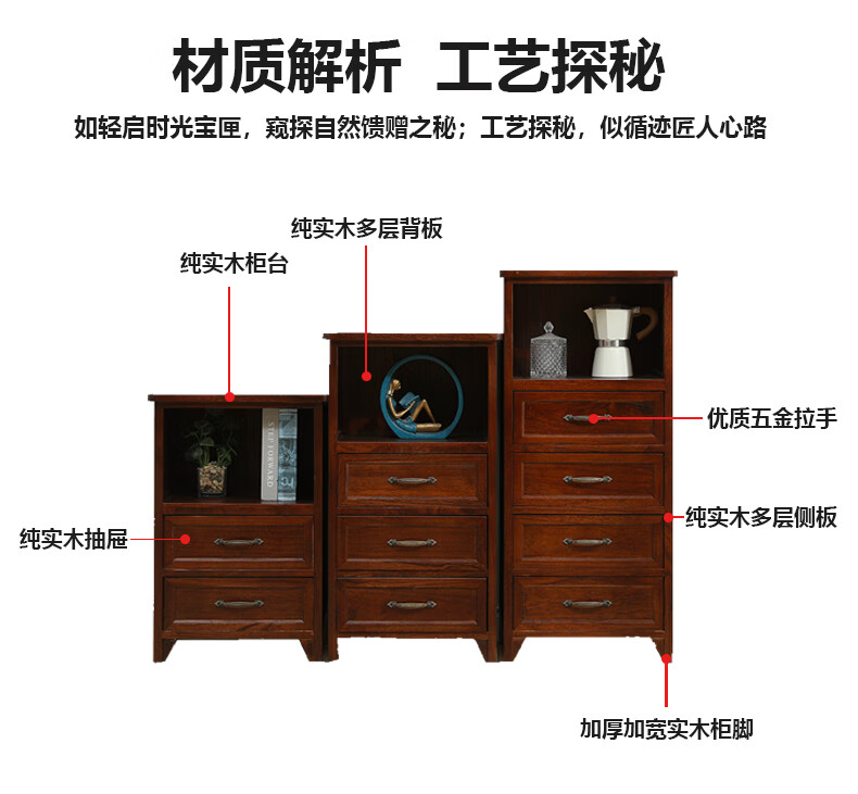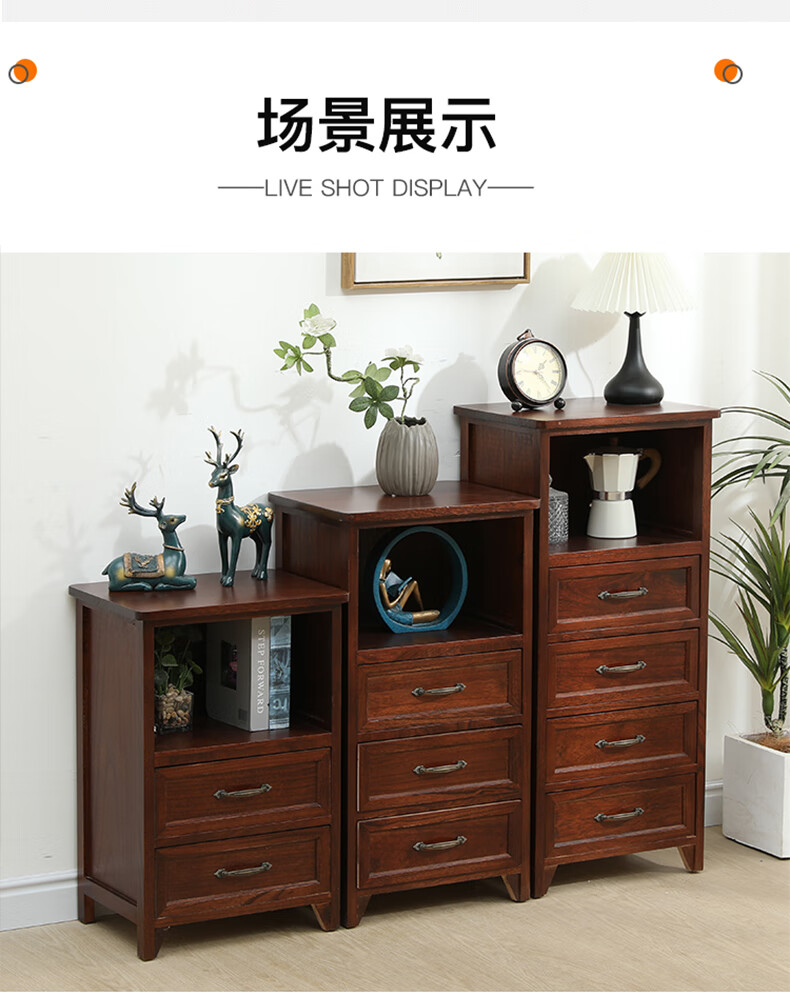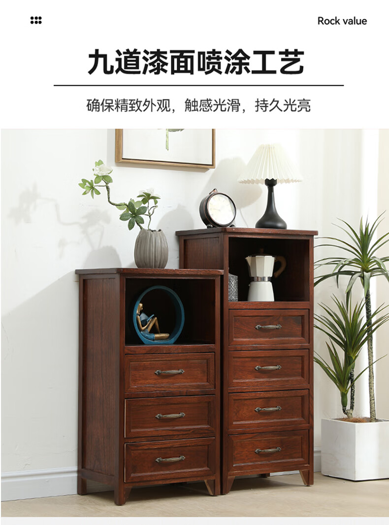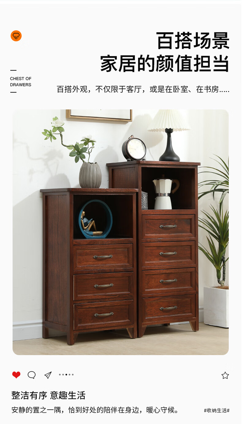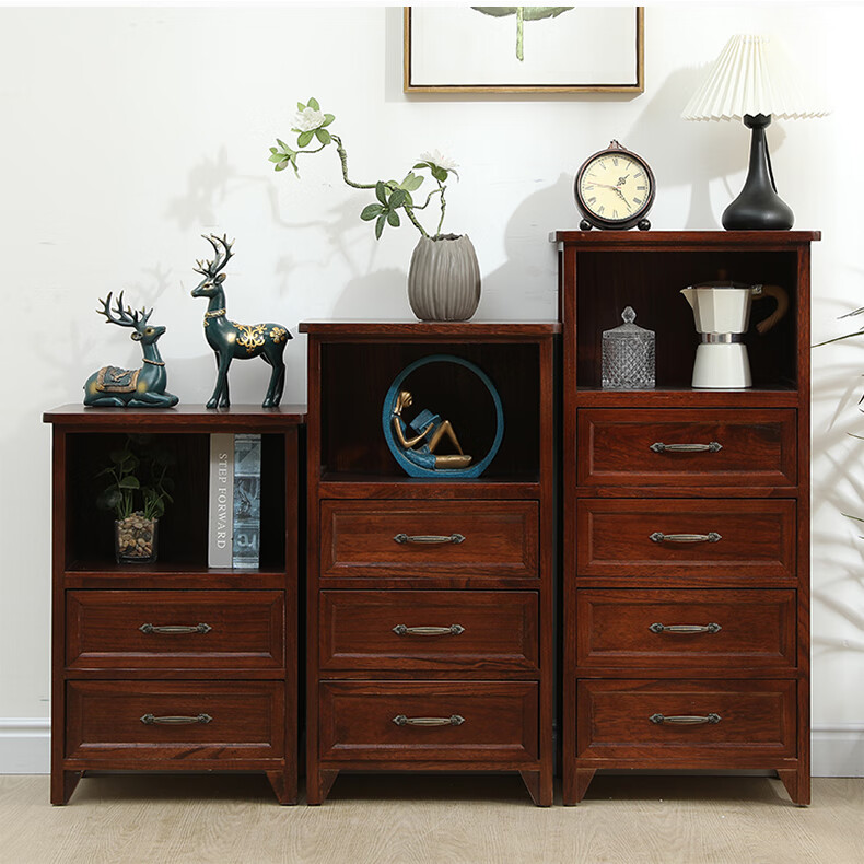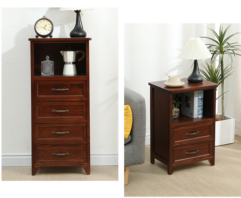 Yu's forest wood all solid wood chest of drawers, installation free, new storage cabinet, solid wood side cabinet, living room, multi-layered American storage cabinet, all solid wood, walnut color, 4 drawers, door-to-door delivery