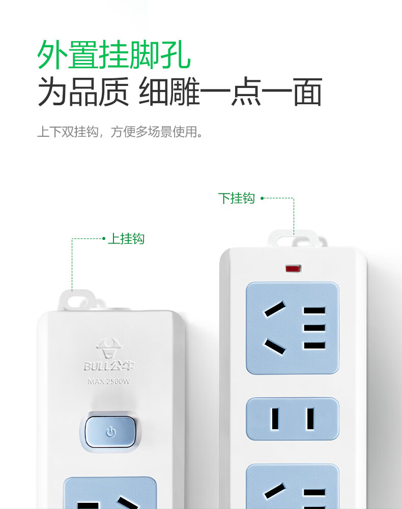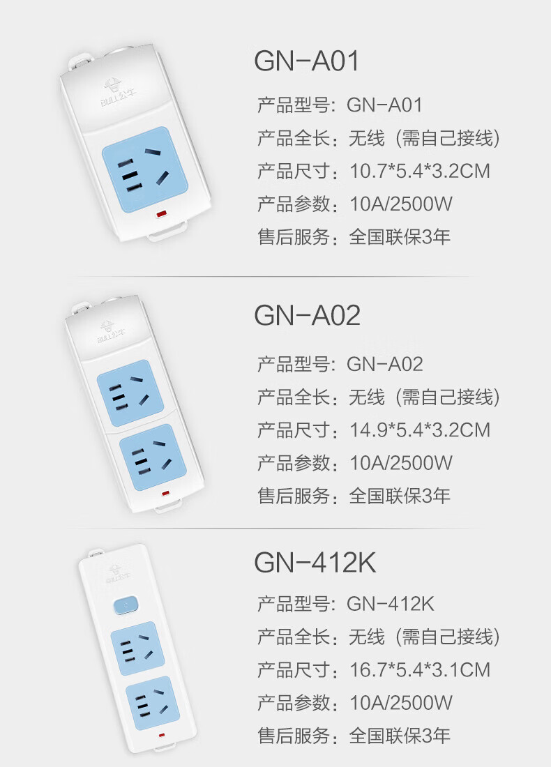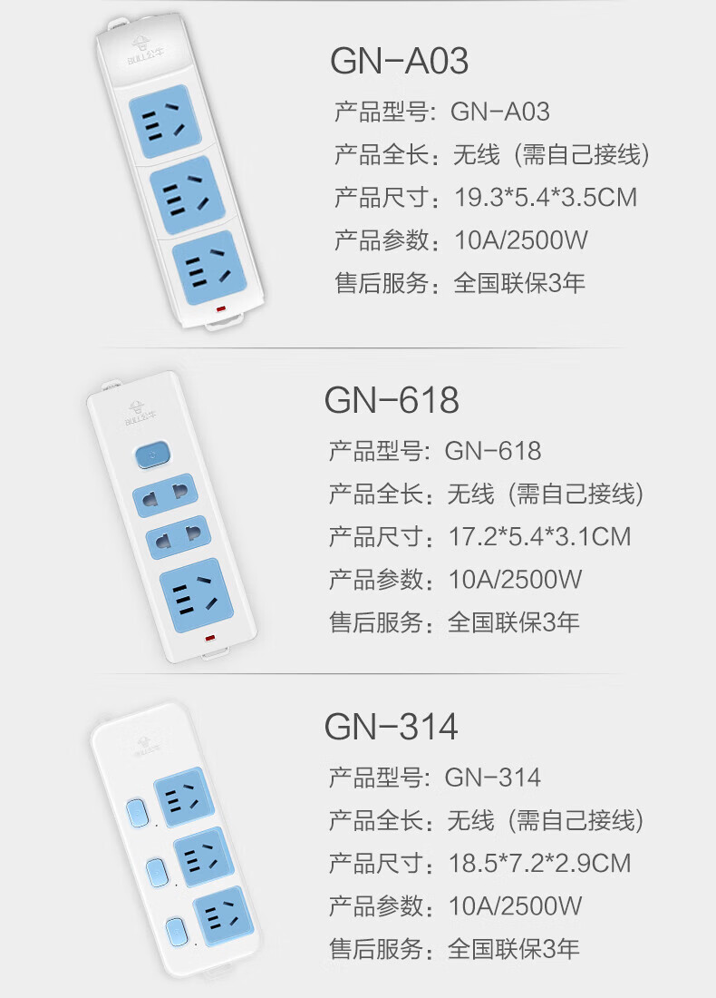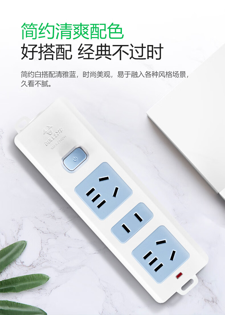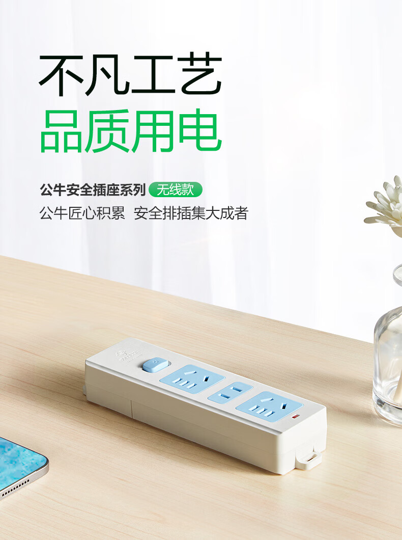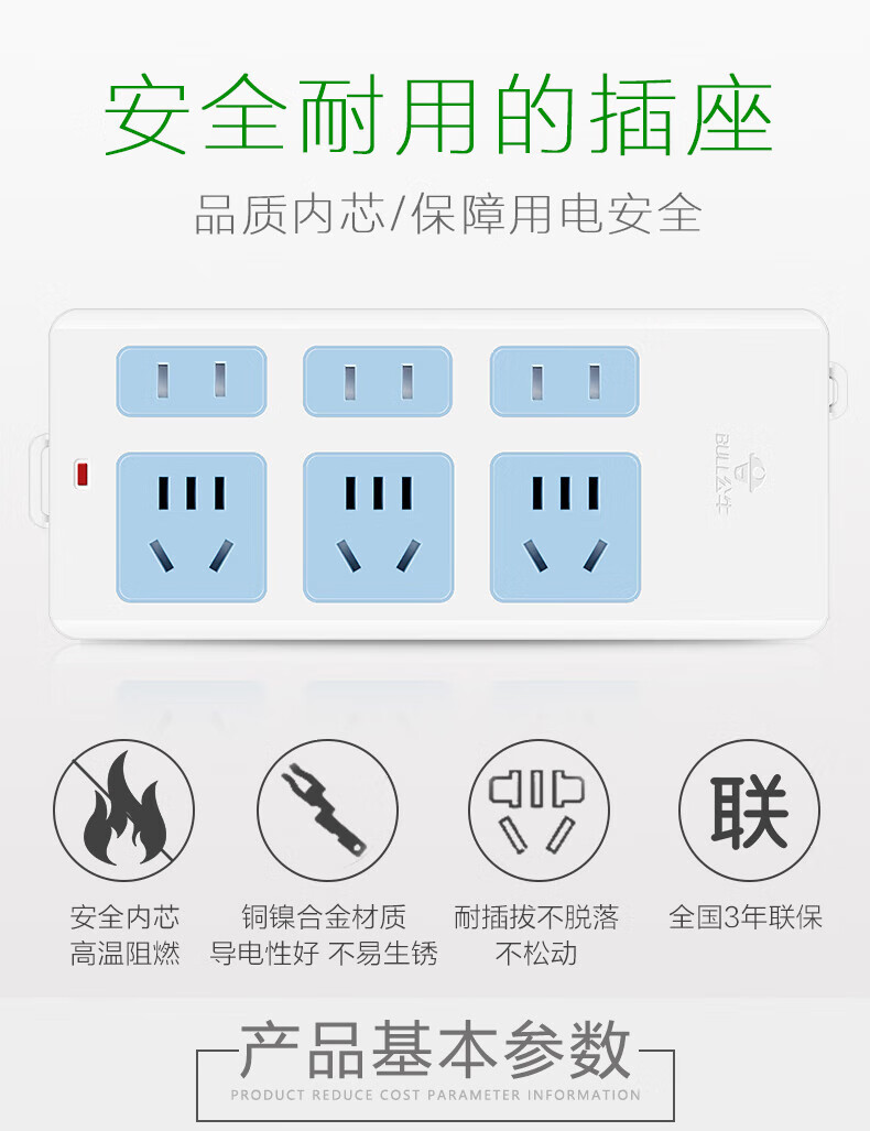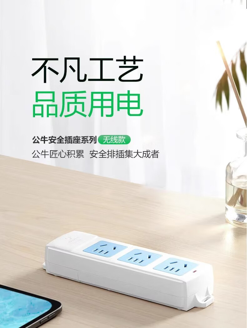 Bull (BULL) wireless plug strip, multi-functional plug strip without wires, household power supply porous self-wiring plug strip, project site weak current box power strip socket new national standard wireless plug strip, 6-position plug strip, no switch, official genuine fire-proof and flame retardant model, three-year warranty, without wire strip