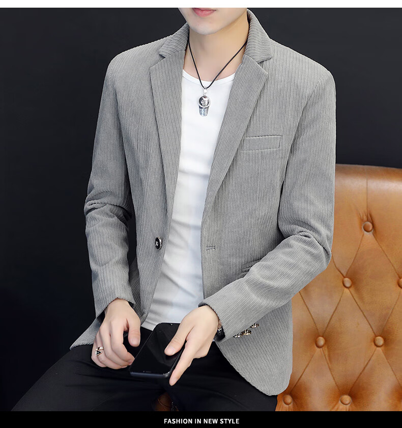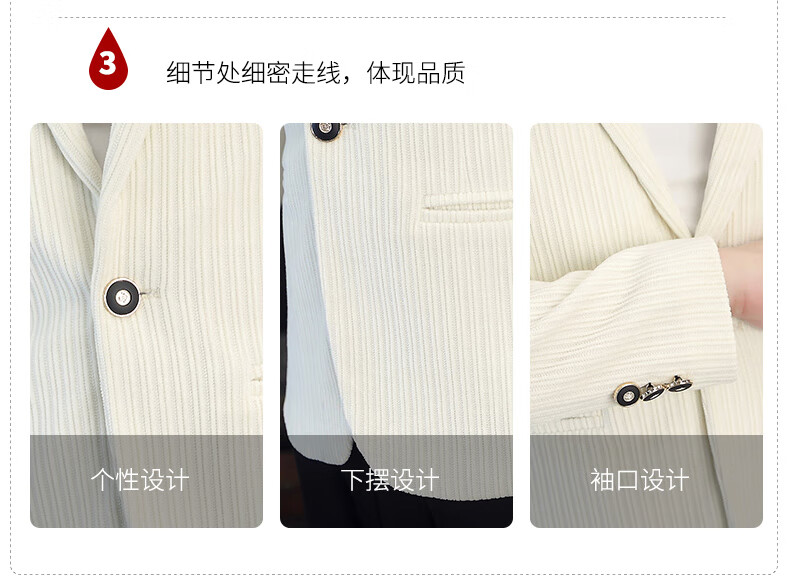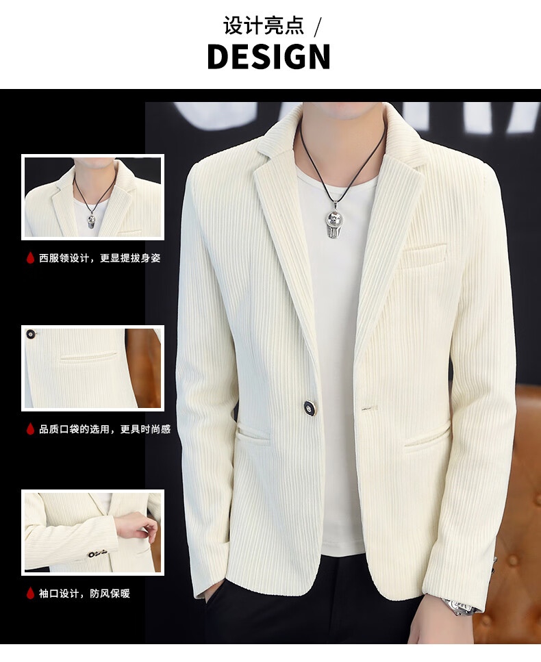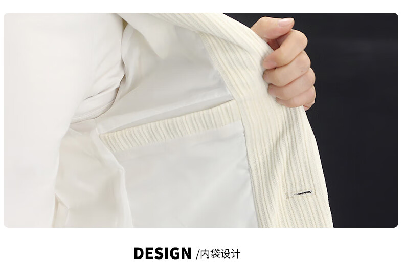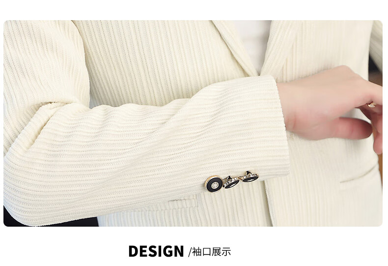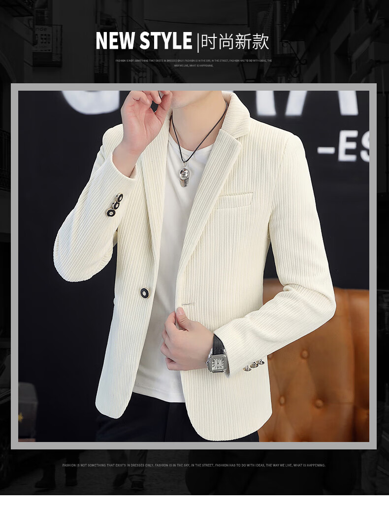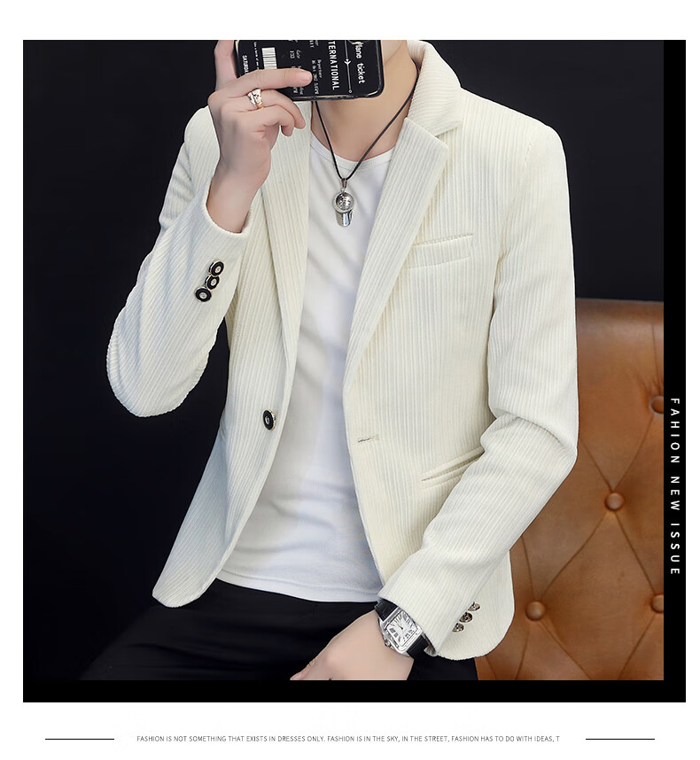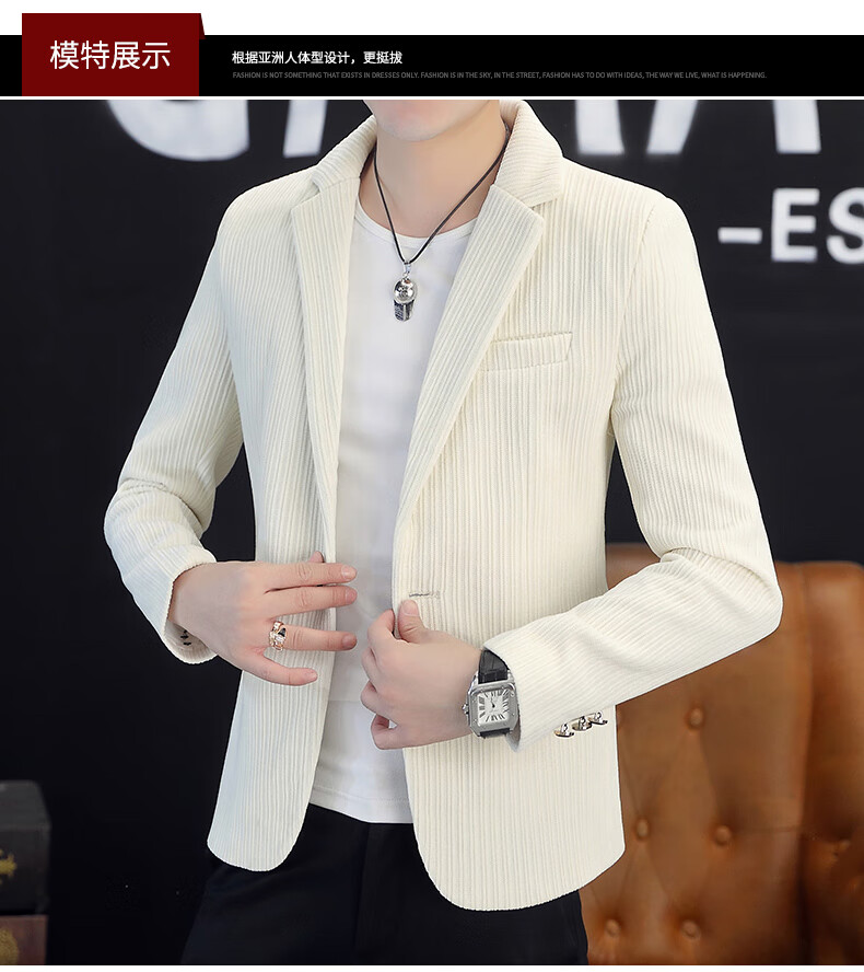 ROMON corduroy suit men's handsome high-end spring and autumn single suit jacket slim and casual spring and autumn velvet thickened small suit off-white 185 3XL
