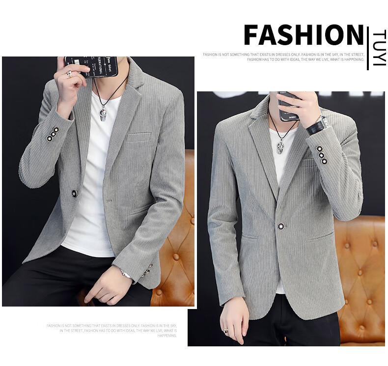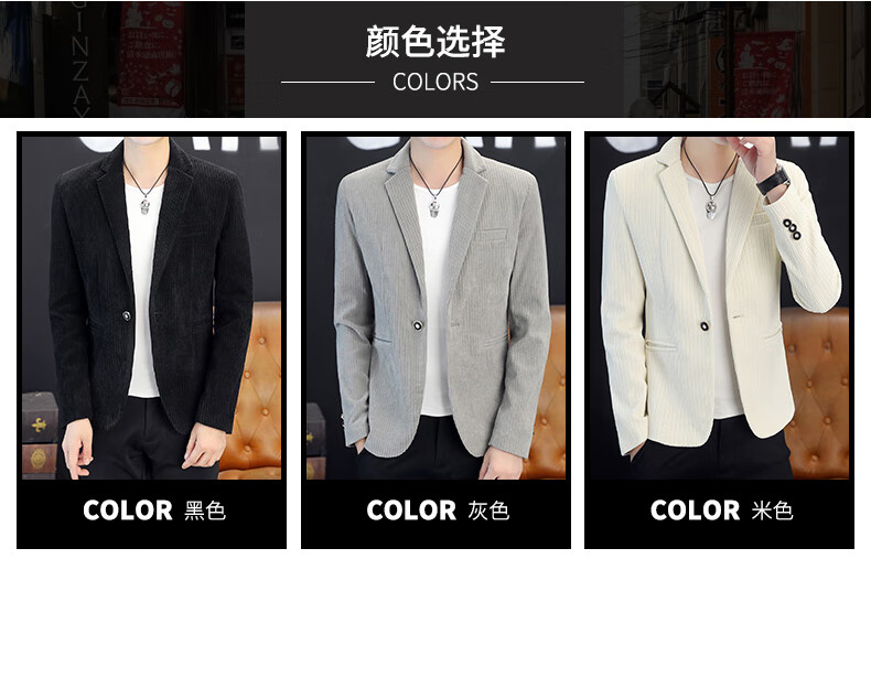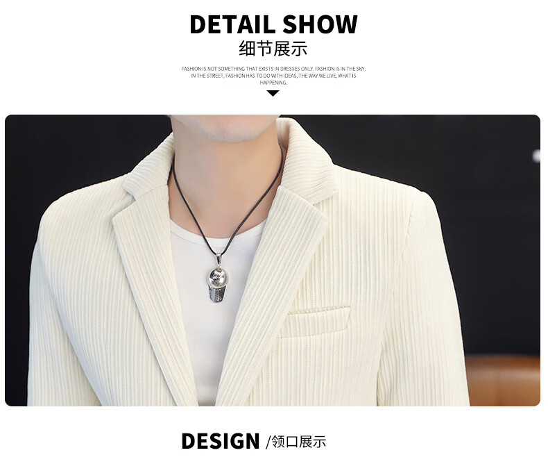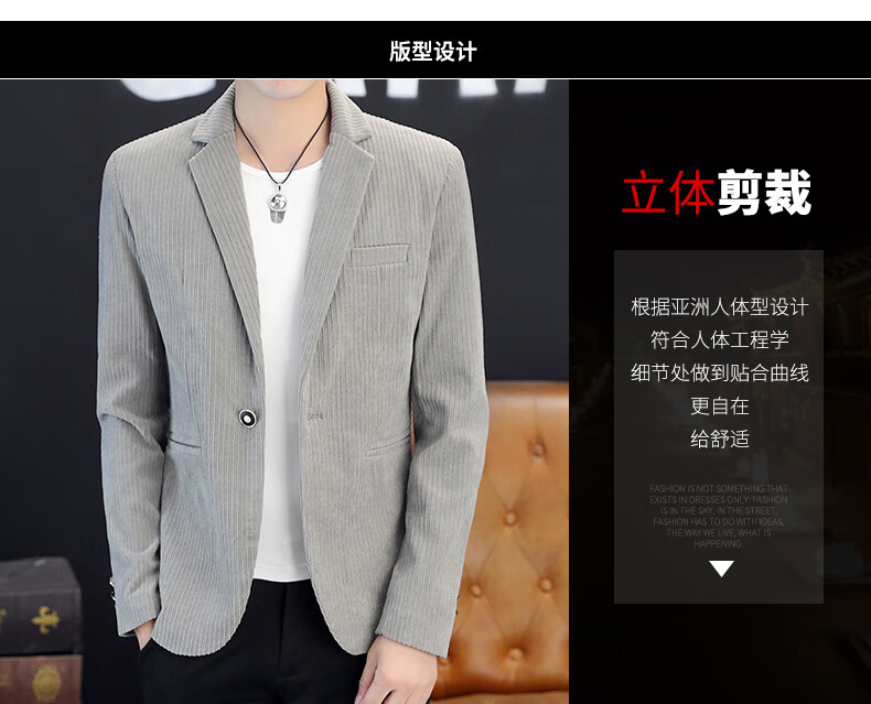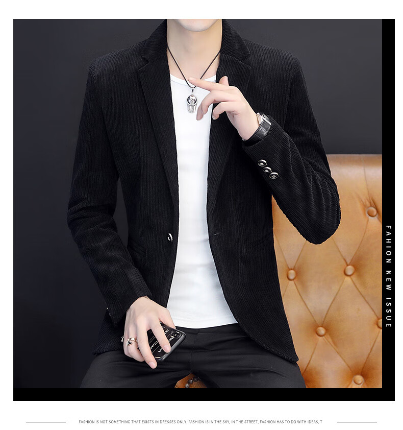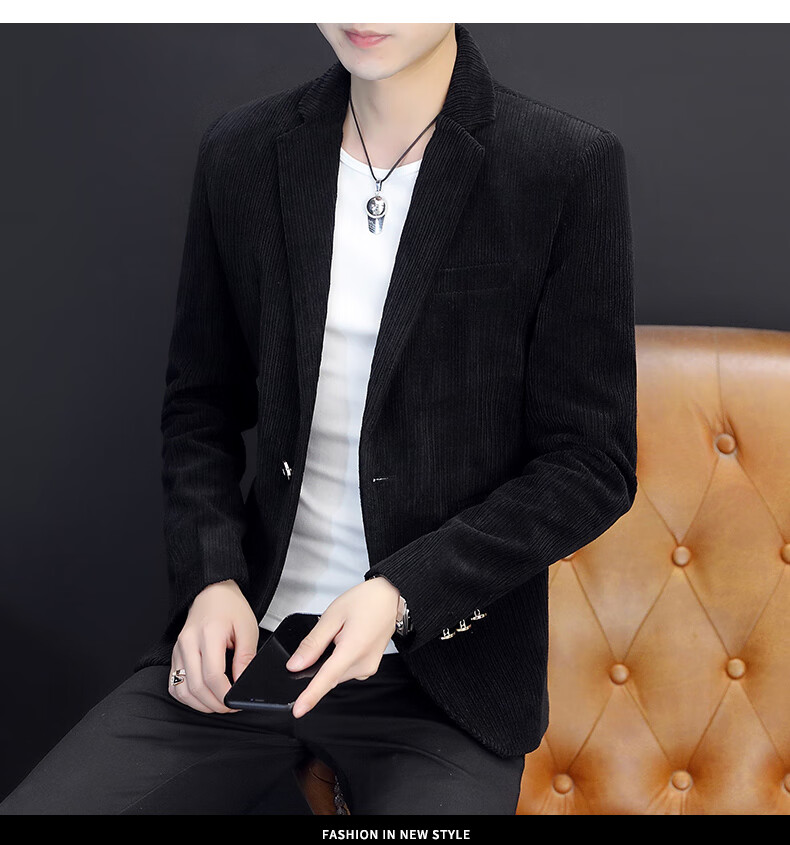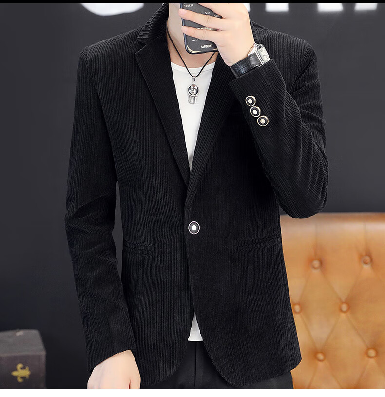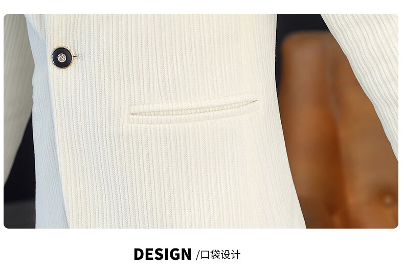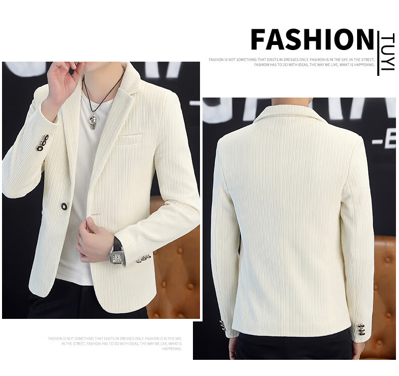 ROMON corduroy suit men's handsome high-end spring and autumn single suit jacket slim and casual spring and autumn velvet thickened small suit off-white 185 3XL