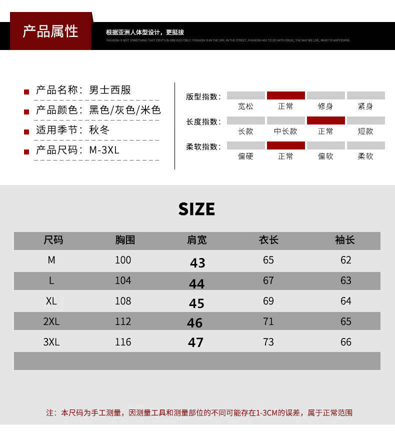 China (cm) 165 / 88-90 170 / 96-98 175 / 108-110 180 / 118-122 185 / 126-130