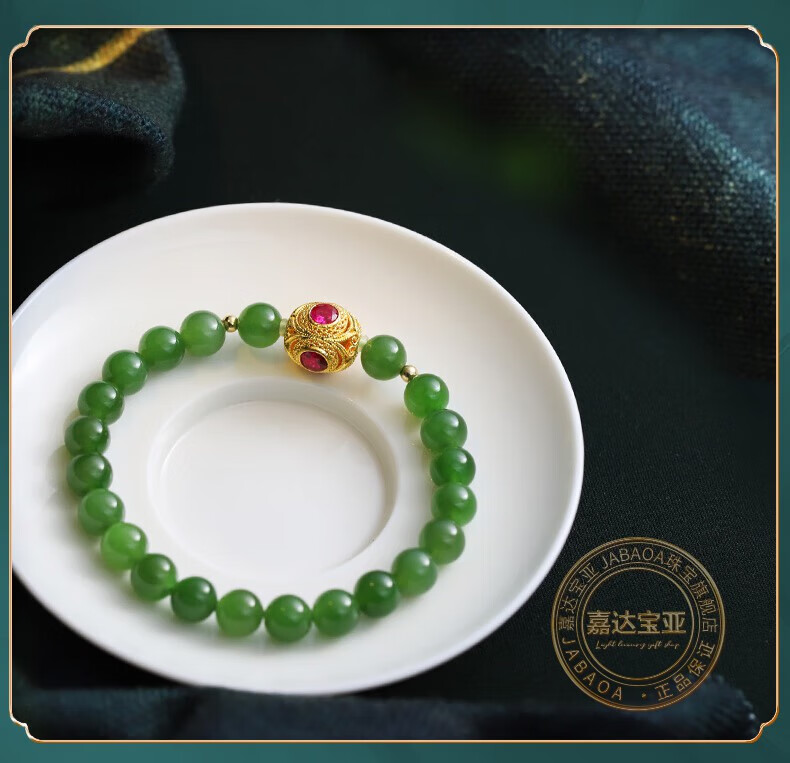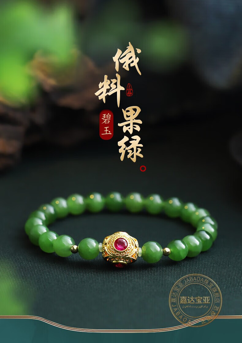 Jiada Baoya Natural Russian Fruit Green Jasper Bracelet Hetian Jade Gold Jade Bracelet Women's Birthday Gift for Girlfriend Mom Natural Russian Fruit Green Jasper Bracelet