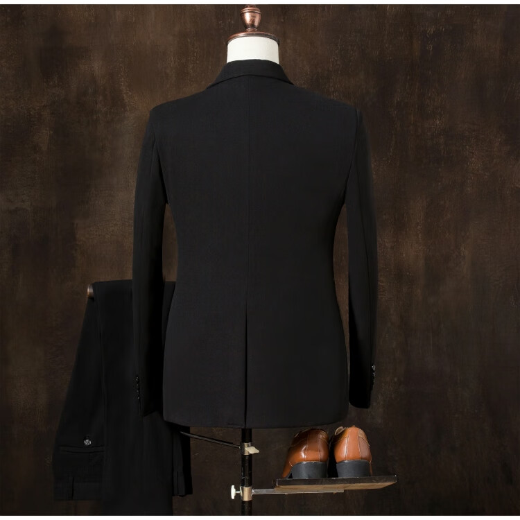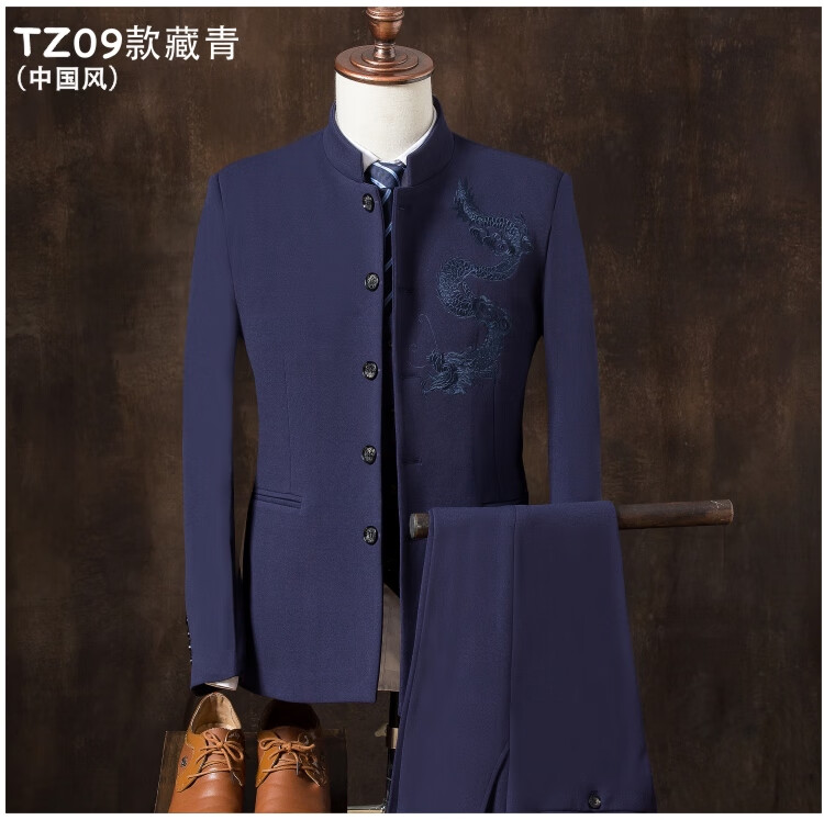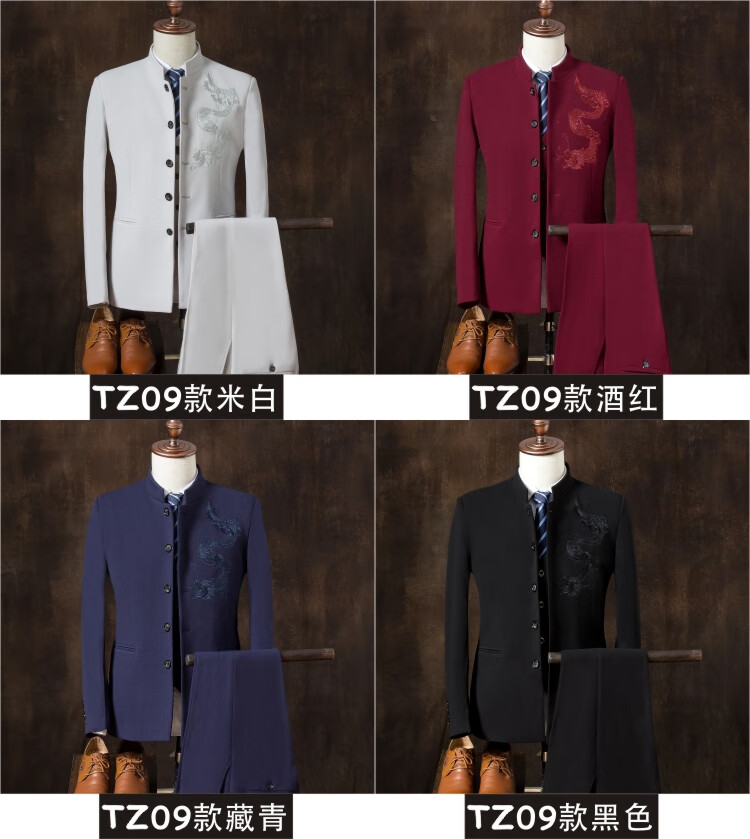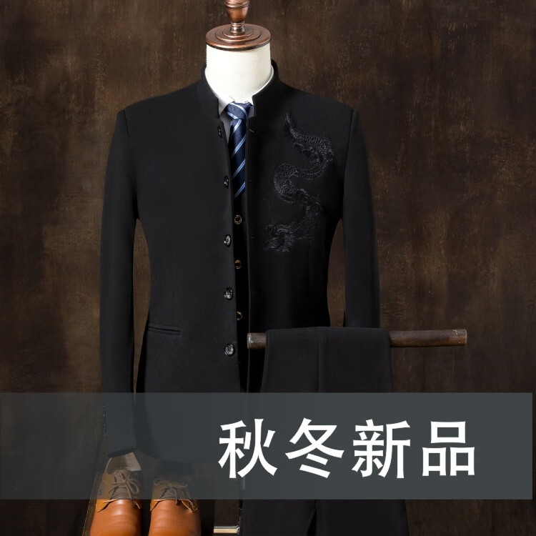 ROMON Men's Suit Chinese Style Embroidery Slim Stand Collar Mao Suit Korean Performance Suit Casual Suit Jacket Fashion Black Suit + Vest + Pants + Shirt Collar 3XL (150~165Jin Jin is equal to 0.5kg)