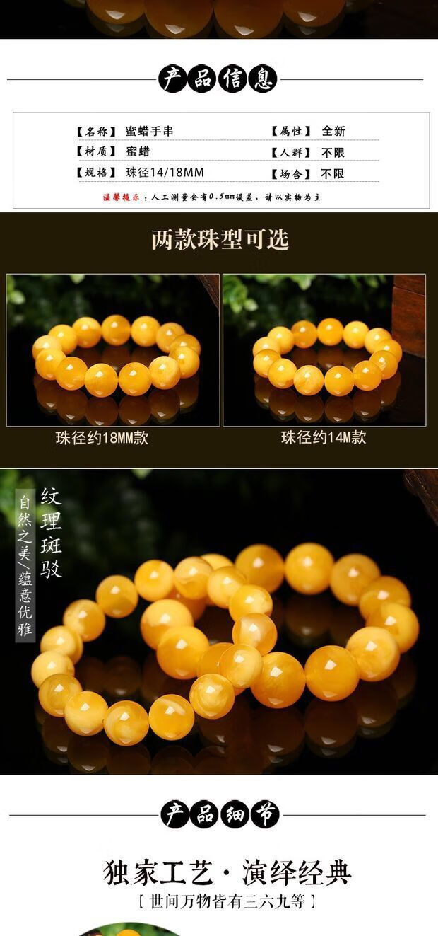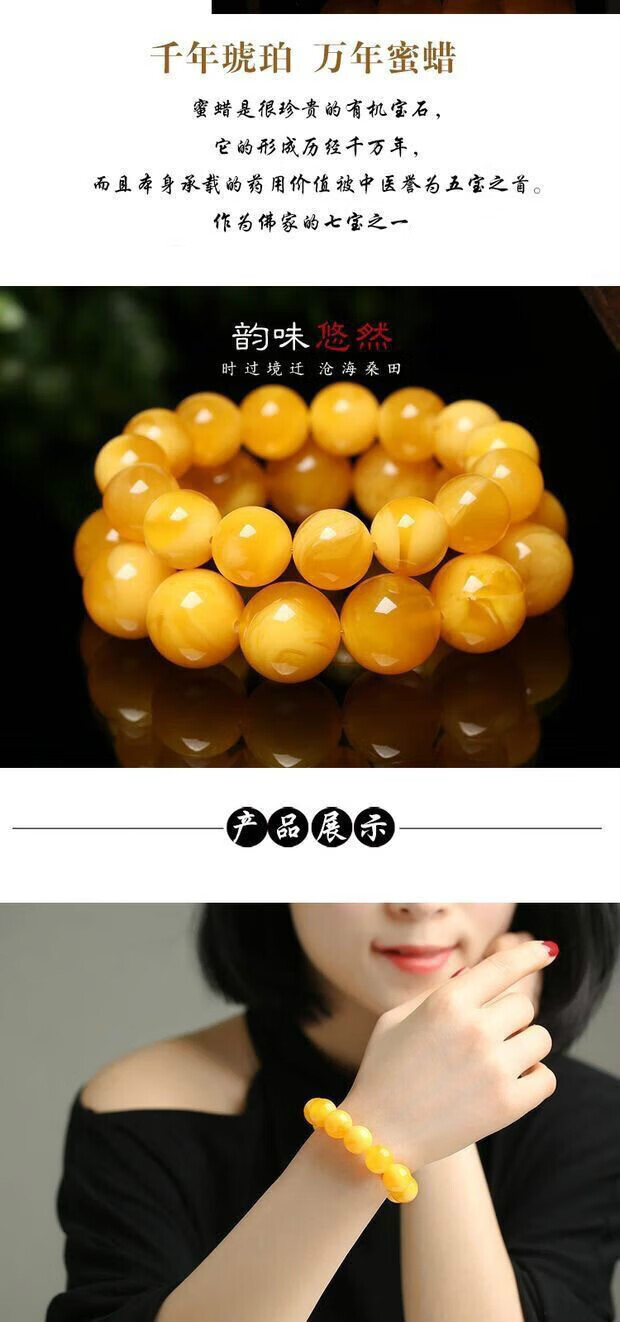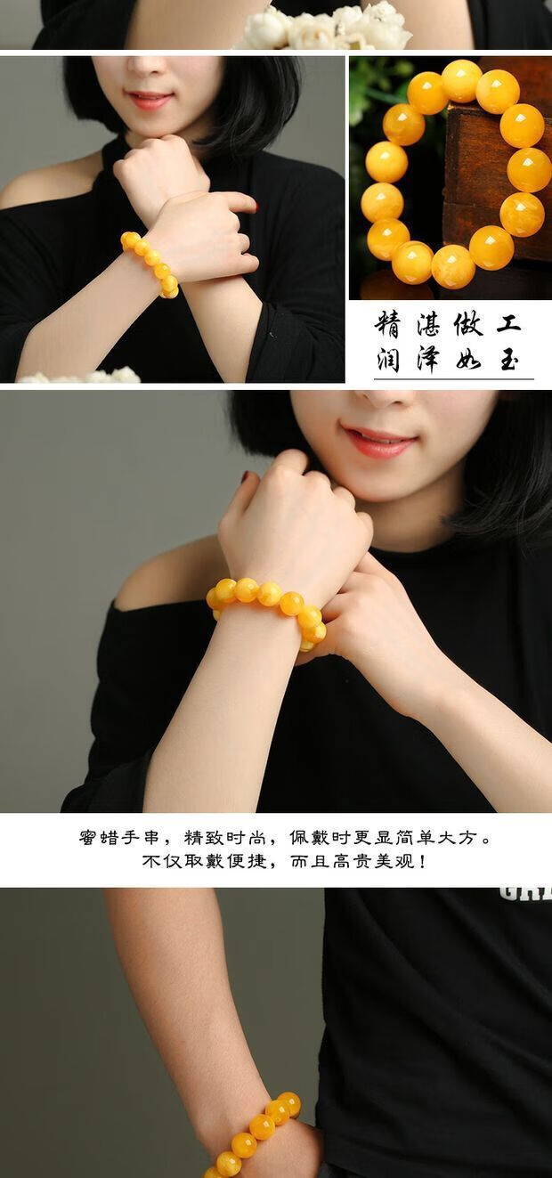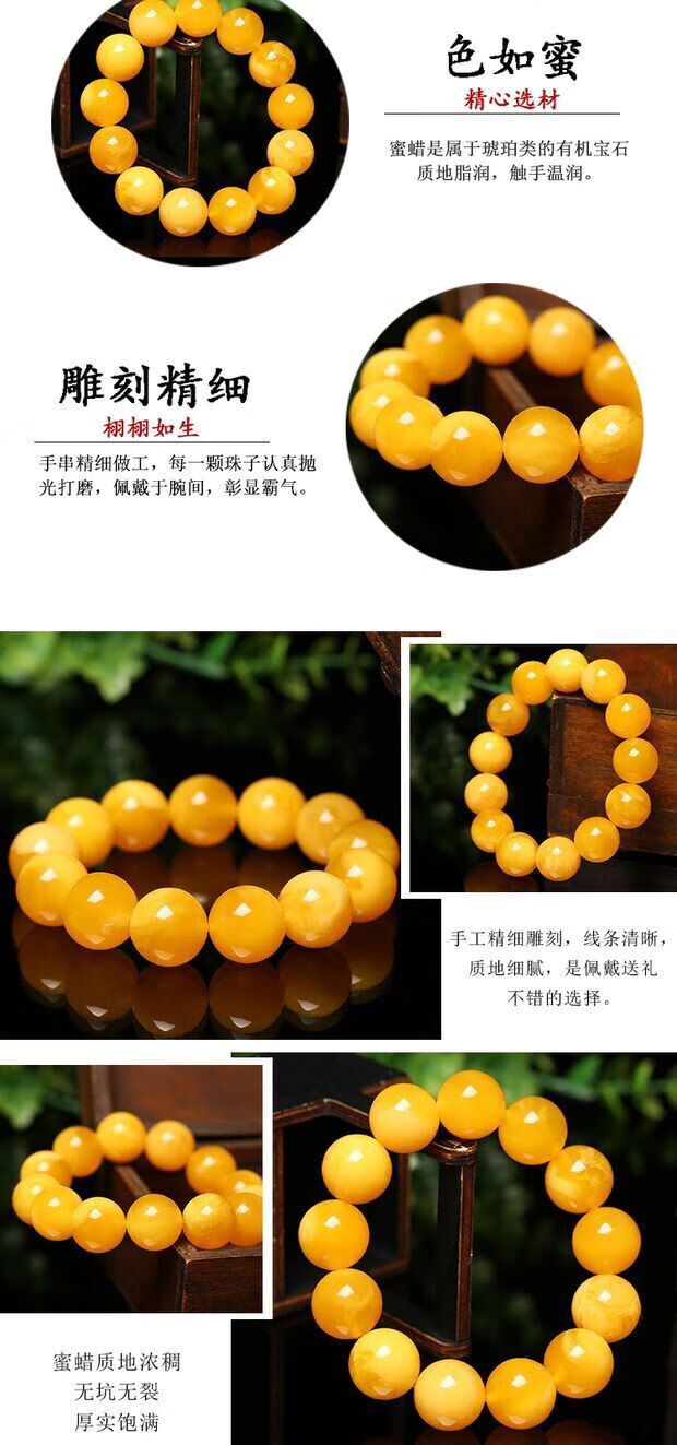 Shuque natural chicken fat yellow beeswax bracelet, men's and women's old honey amber bead bracelet, rough stone for men and women, selected 20mm (with certificate)