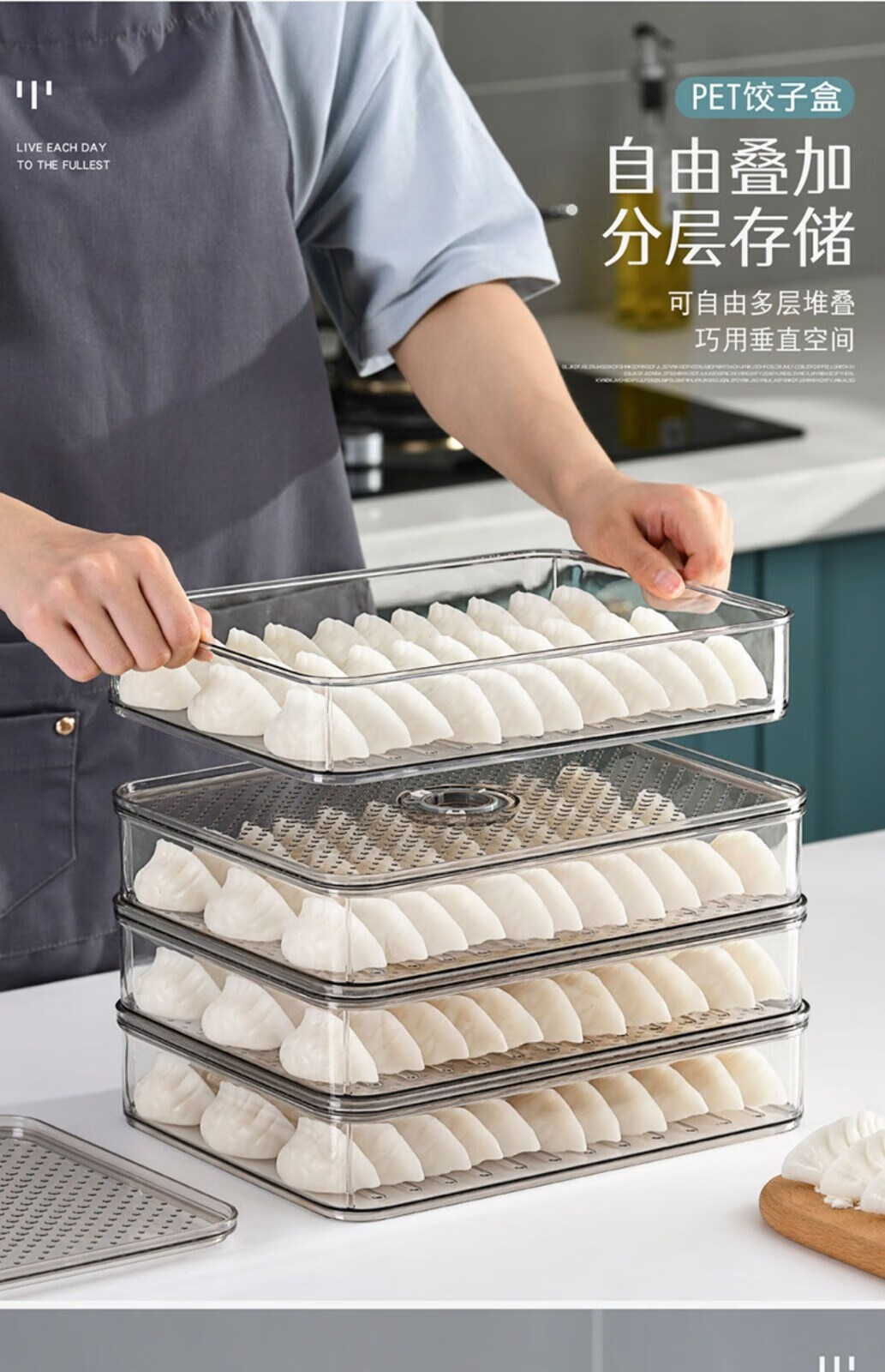 Huazi dumpling storage box for refrigerator, food-grade frozen dumpling tray, multi-layer frozen quick-frozen preservation box, two layers and two lids 0