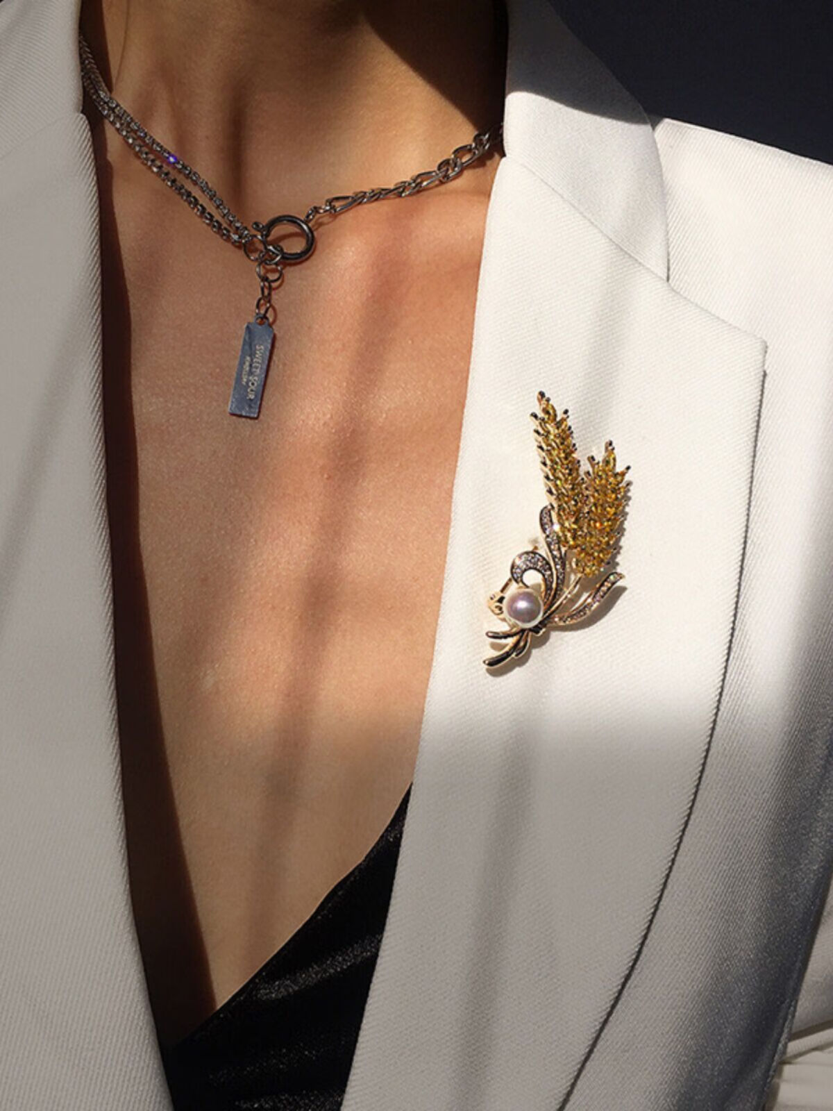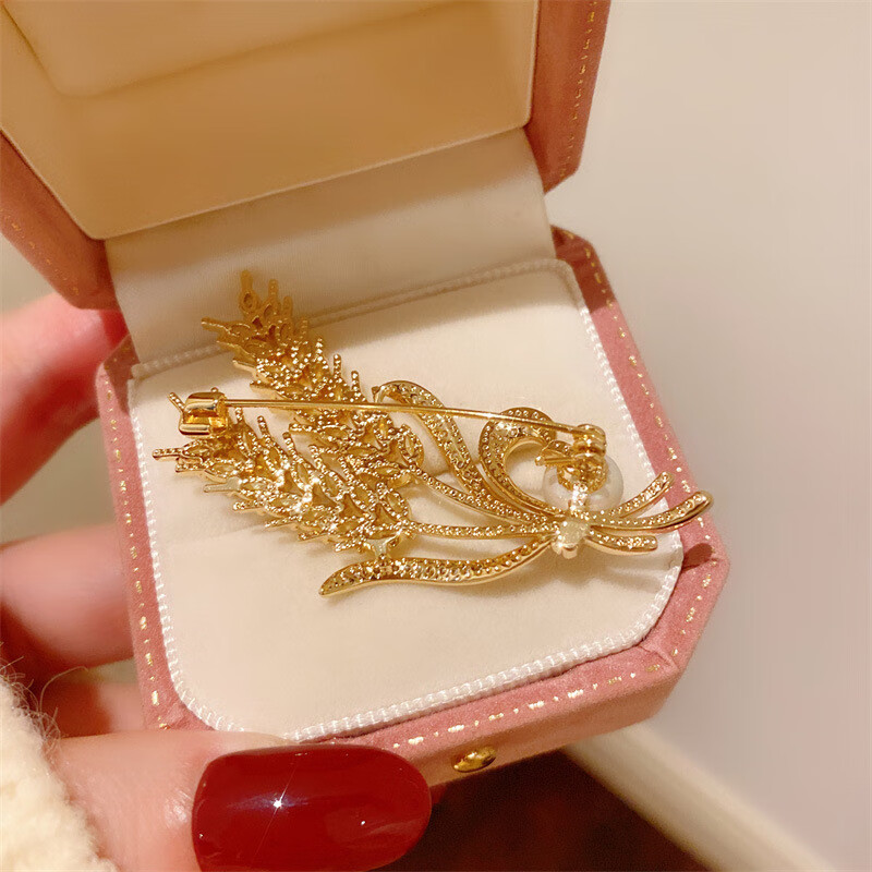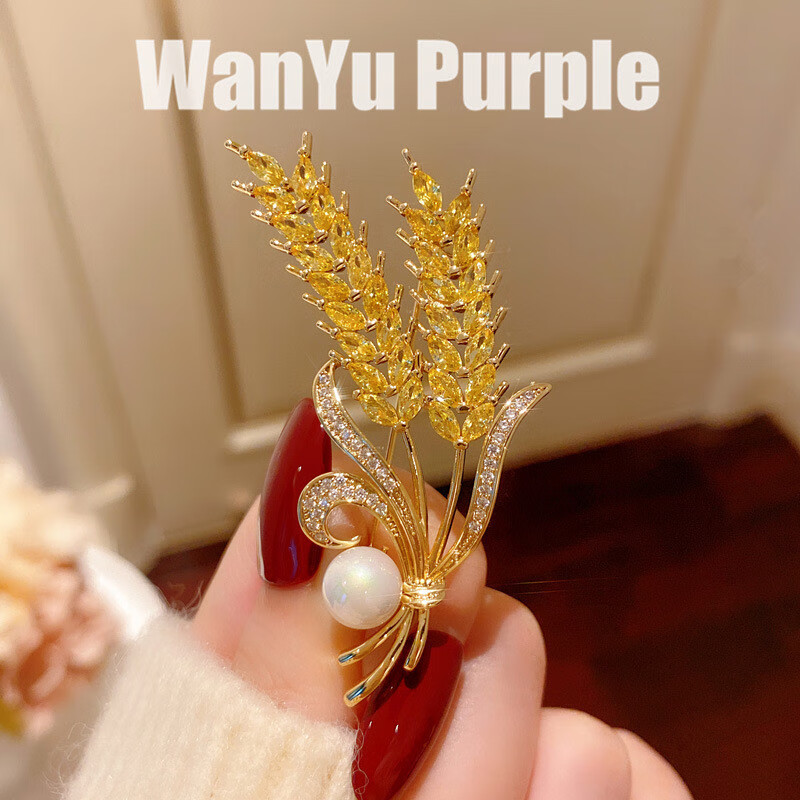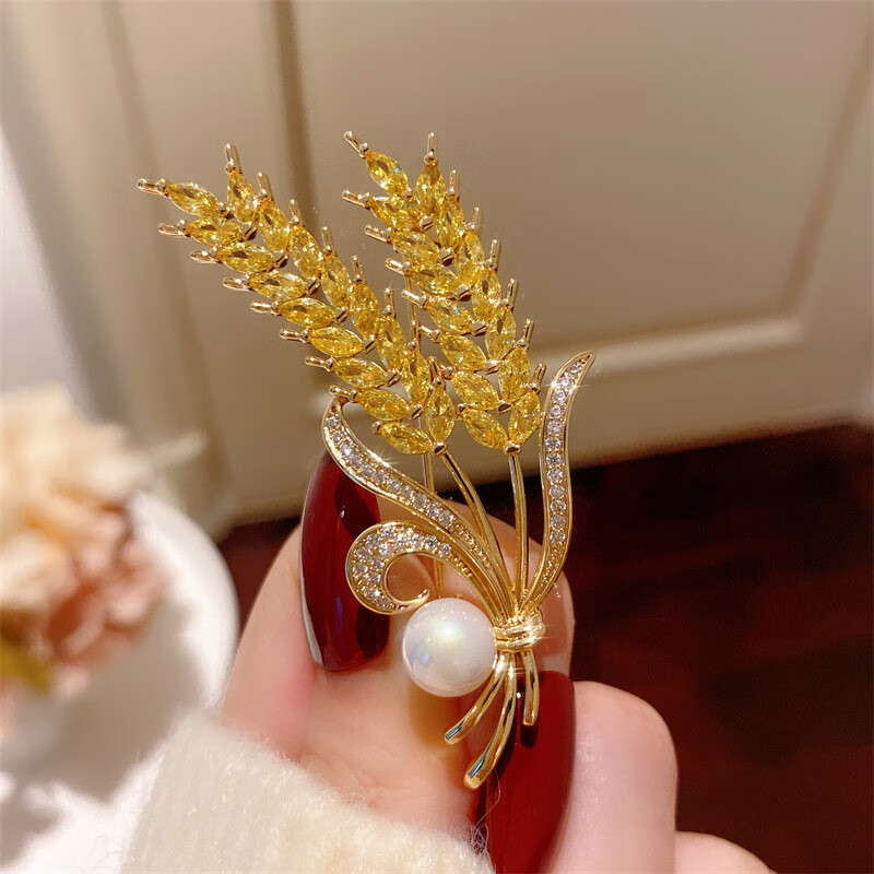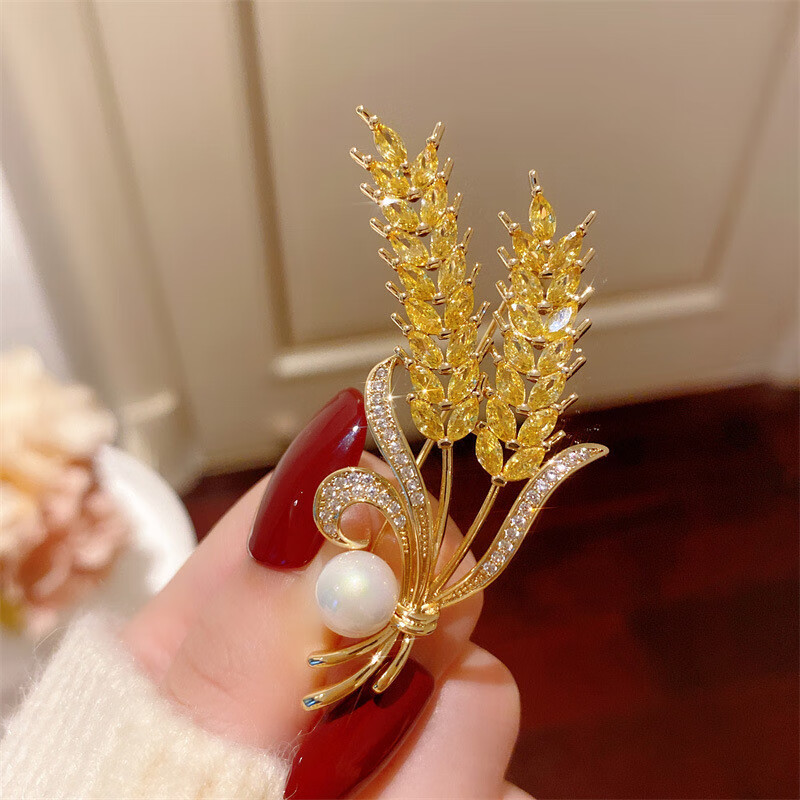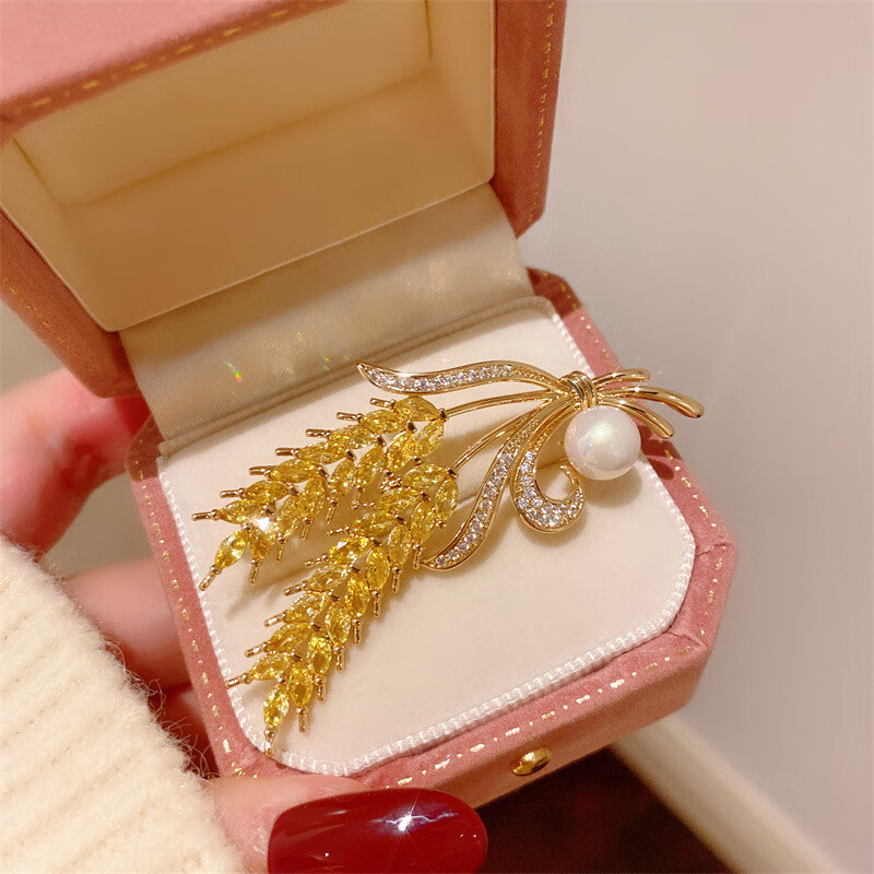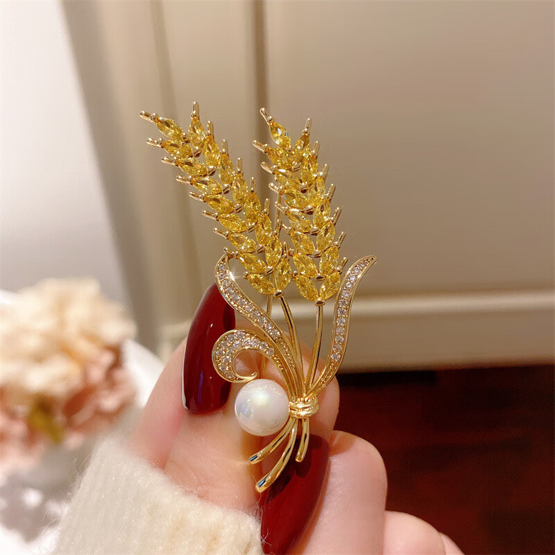 DYN high-end real gold electroplated wheat ear pearl brooch to fix clothes corsage suit coat jacket pin accessories gift wheat ear pearl brooch 3.4cm*5.8cm