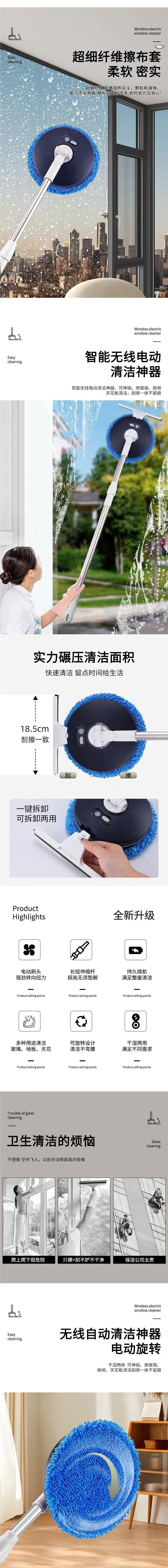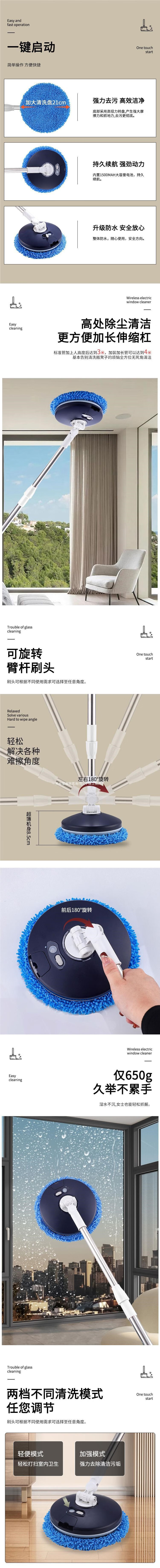 Beijingjie electric window glass mop telescopic pole without watermark double-sided wiping tool for high-rise exterior windows housekeeping cleaning with scraper 1.4 meters - electric wireless cleaning