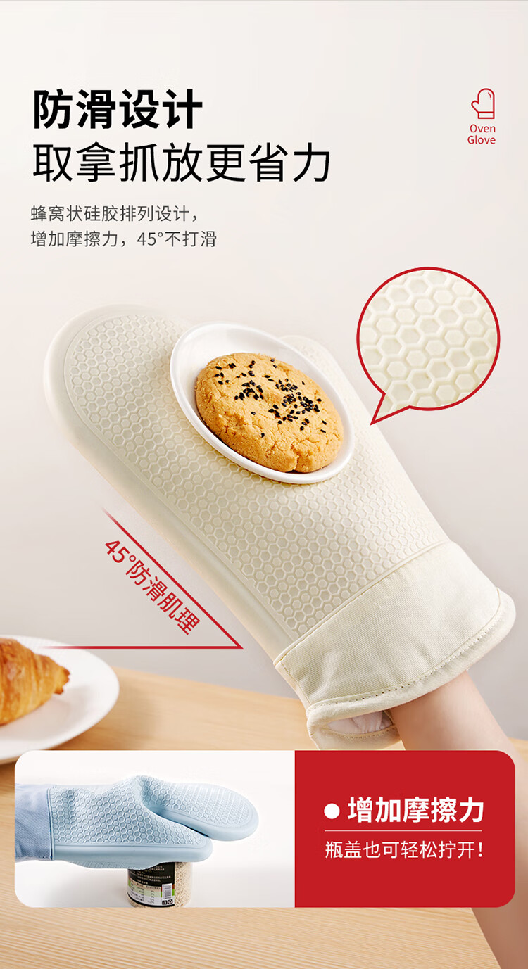 Xinliang Top Kitchen Anti-scald Gloves Insulated Baking Gloves Oven Microwave Kitchen Anti-scald Gloves Resistant to High Temperature Baking Tools Anti-scald Insulated Gloves (Milky White)*1 piece