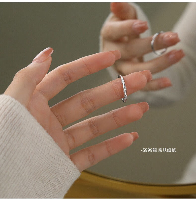 Canxian s925 sterling silver twined love sparkling diamond ring for women, light luxury, high-end, non-fading ring, plain ring, open ring, S999 full body pure silver (micropaved zircon), opening adjustable