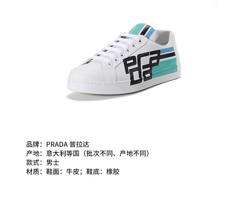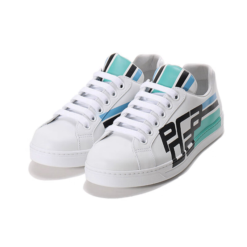 PRADA men's leather sneakers gift for men 4E3409 3KQL F0009 white multi-color 43 / brand original code 9