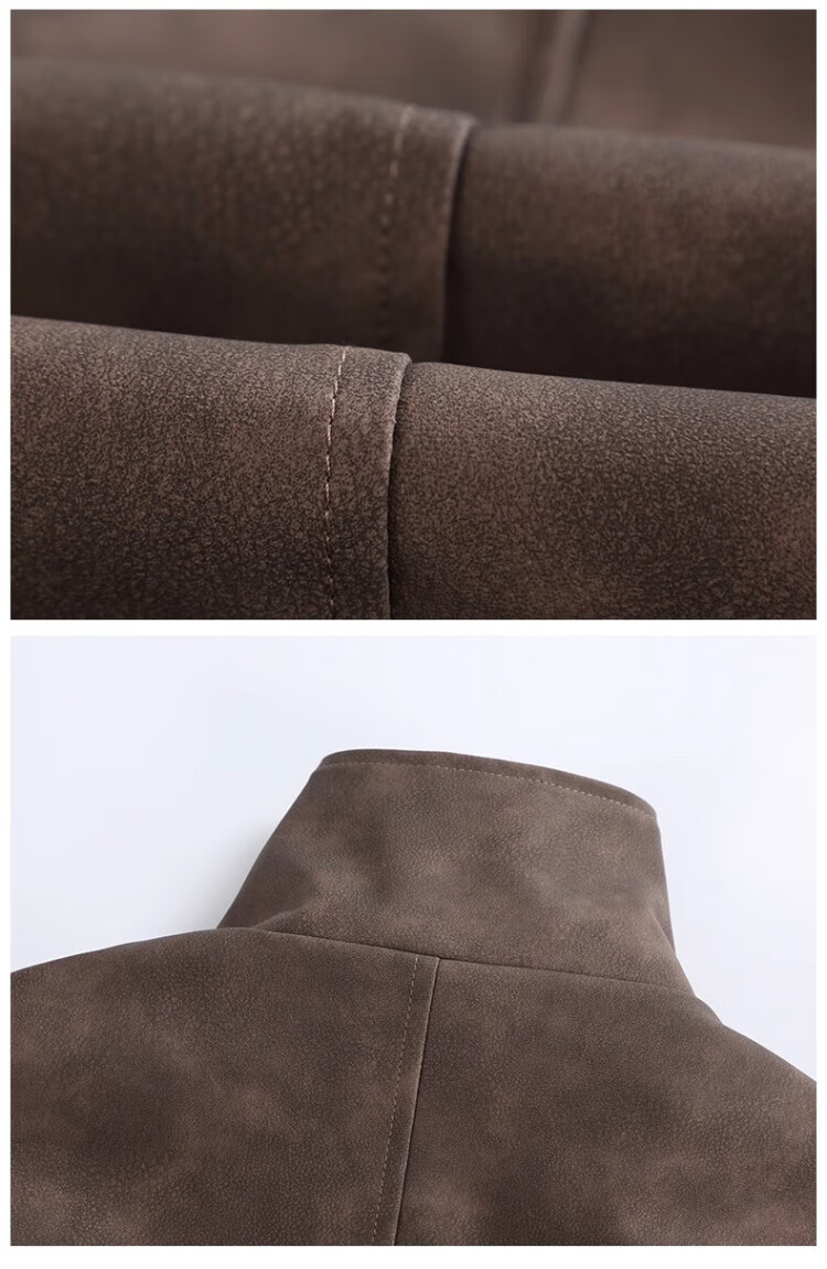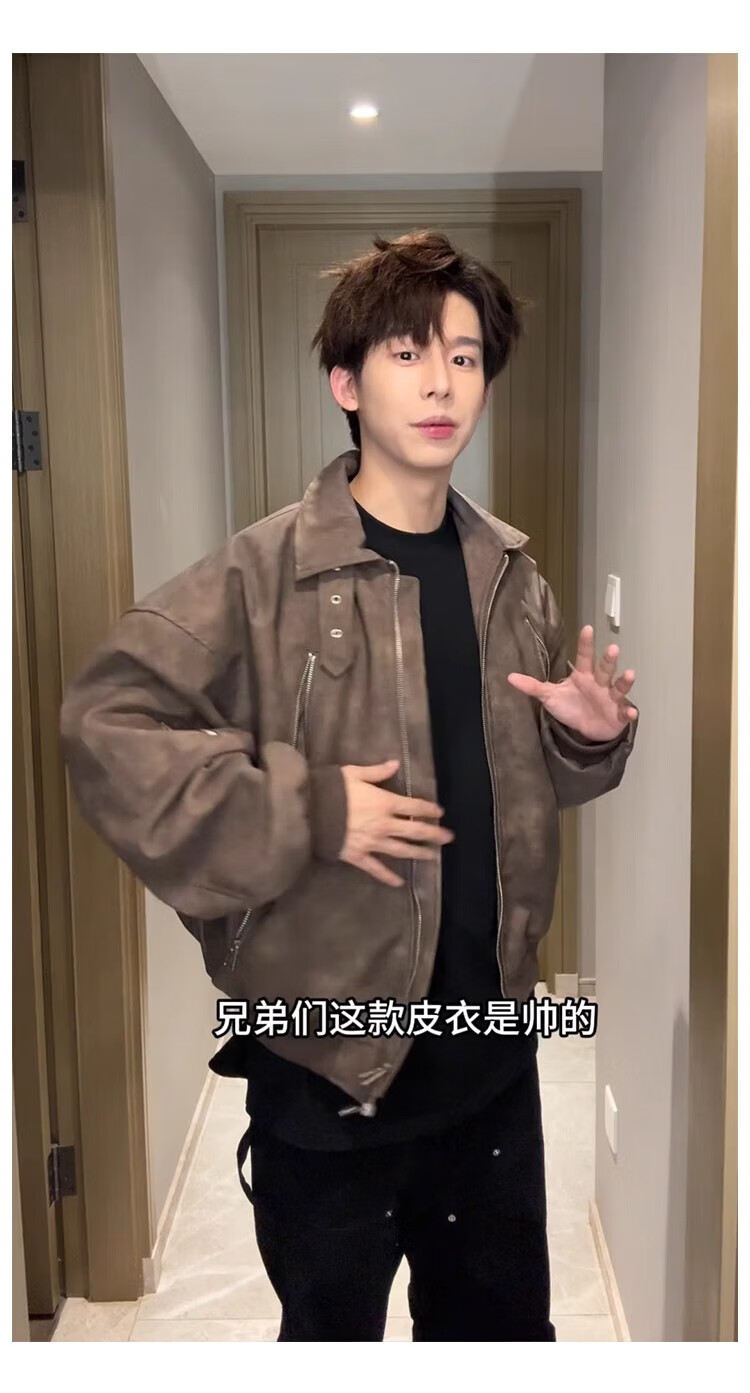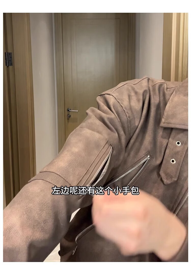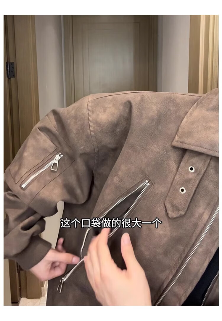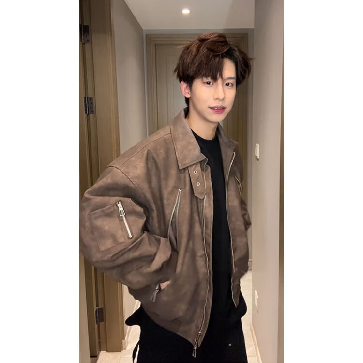 Yiran presents Maillard brown PU leather motorcycle jacket for men spring and autumn new American vintage pilot uniform jacket for men brown L recommended 120-135 Jin Jin equals 0.5 kg