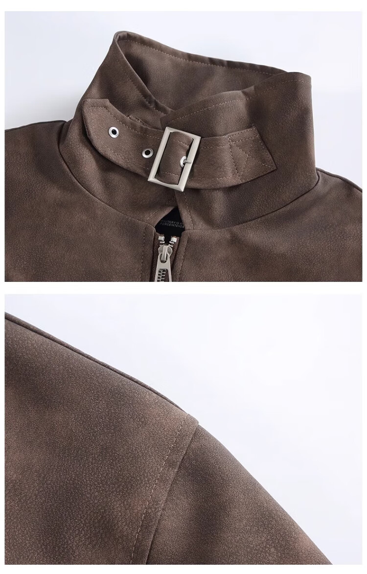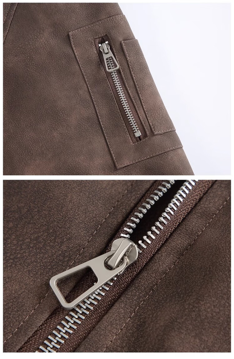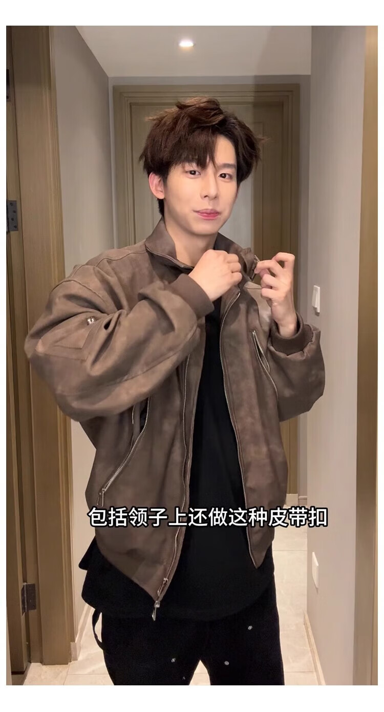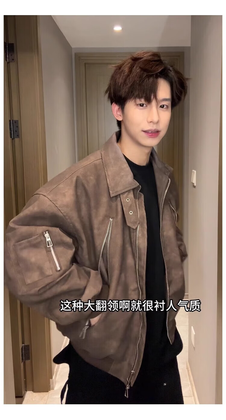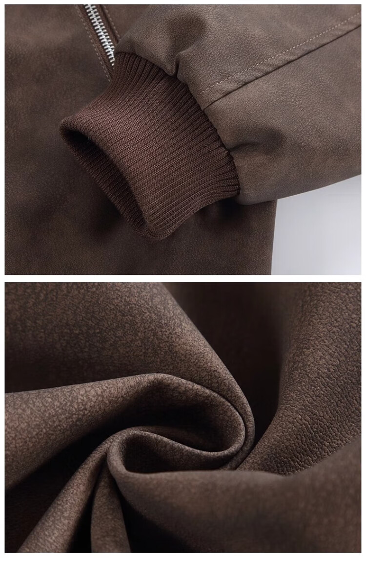 Yiran presents Maillard brown PU leather motorcycle jacket for men spring and autumn new American vintage pilot uniform jacket for men brown L recommended 120-135 Jin Jin equals 0.5 kg