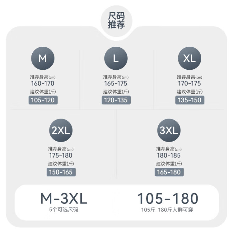 China (cm) 165 / 88-90 170 / 96-98 175 / 108-110 180 / 118-122 185 / 126-130